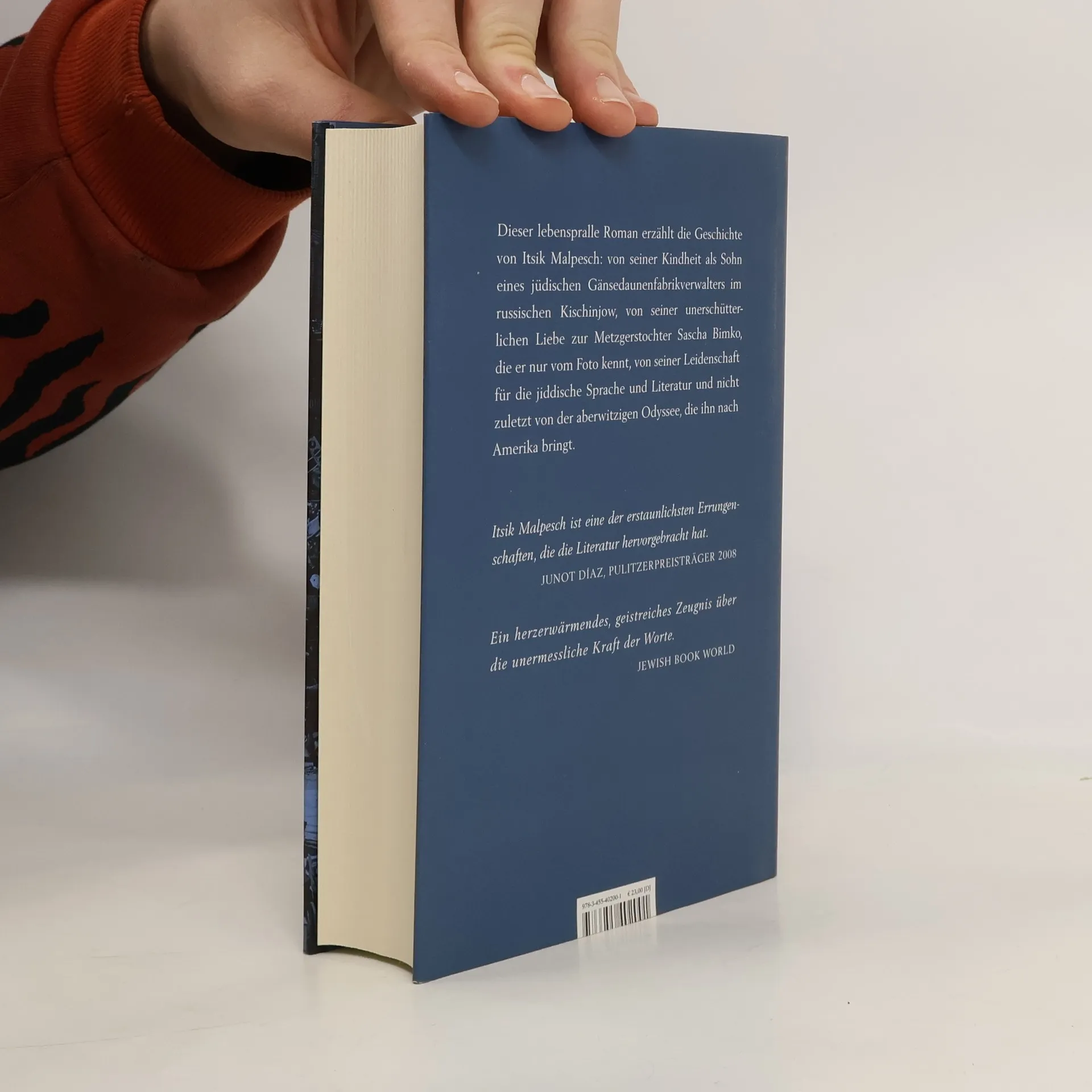 Dieser lebenspralle Roman erzählt die Geschichte von Itsik Malpesch: von seiner Kindheit als Sohn eines jüdischen Gänsedaunenfabrikverwalters im russischen Kischinjow, von seiner Liebe zur Metzgerstochter Sascha Bimko und von seiner Odyssee, die ihn nach Amerika bringt, wo er sich zum letzten Dichter jiddischer Sprache ernennt. Itsik Malpesch liebt schon als Junge Geschichten mehr als Talmudstudien. Statt Süßigkeiten kauft er einem Kameraden „Schuld und Sühne“ für eine Kopeke pro Seite ab. Seine zweite Leidenschaft gilt Sascha, der jüdischen Metzgerstochter, die einst das Leben der Familie Malpesch während eines Pogroms rettete. Die Verschollene ist die Muse, der Itsik seine Gedichte widmet. Am Ende seiner Odyssee, die ihn über Odessa nach Amerika führt, beschert ihm das Schicksal nicht nur den wichtigen Kontakt zu Zeitungsverleger Knobloch, der in seiner Bibliothek der unerfüllten Träume jiddische Literatur sammelt. Er trifft auch Sascha Bimko wieder. Doch wie so oft im Leben des Itsik Malpesch ist sein Glück nur von kurzer Dauer. „Itsik Malpesch ist eine der erstaunlichsten Errungenschaften, die die Literatur hervorgebracht hat.“ Pulitzerpreisträger Junot Díaz
