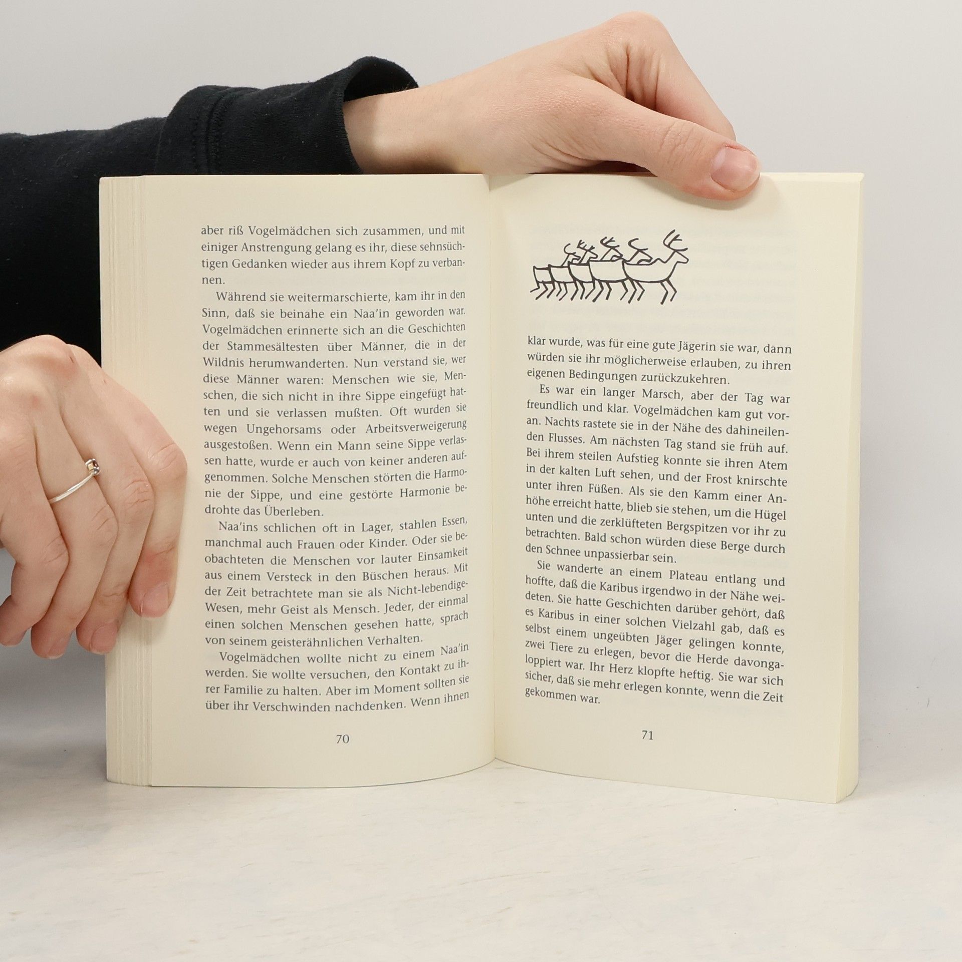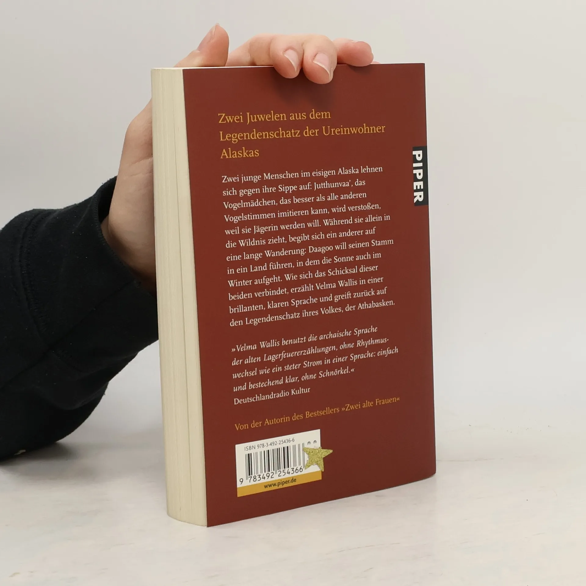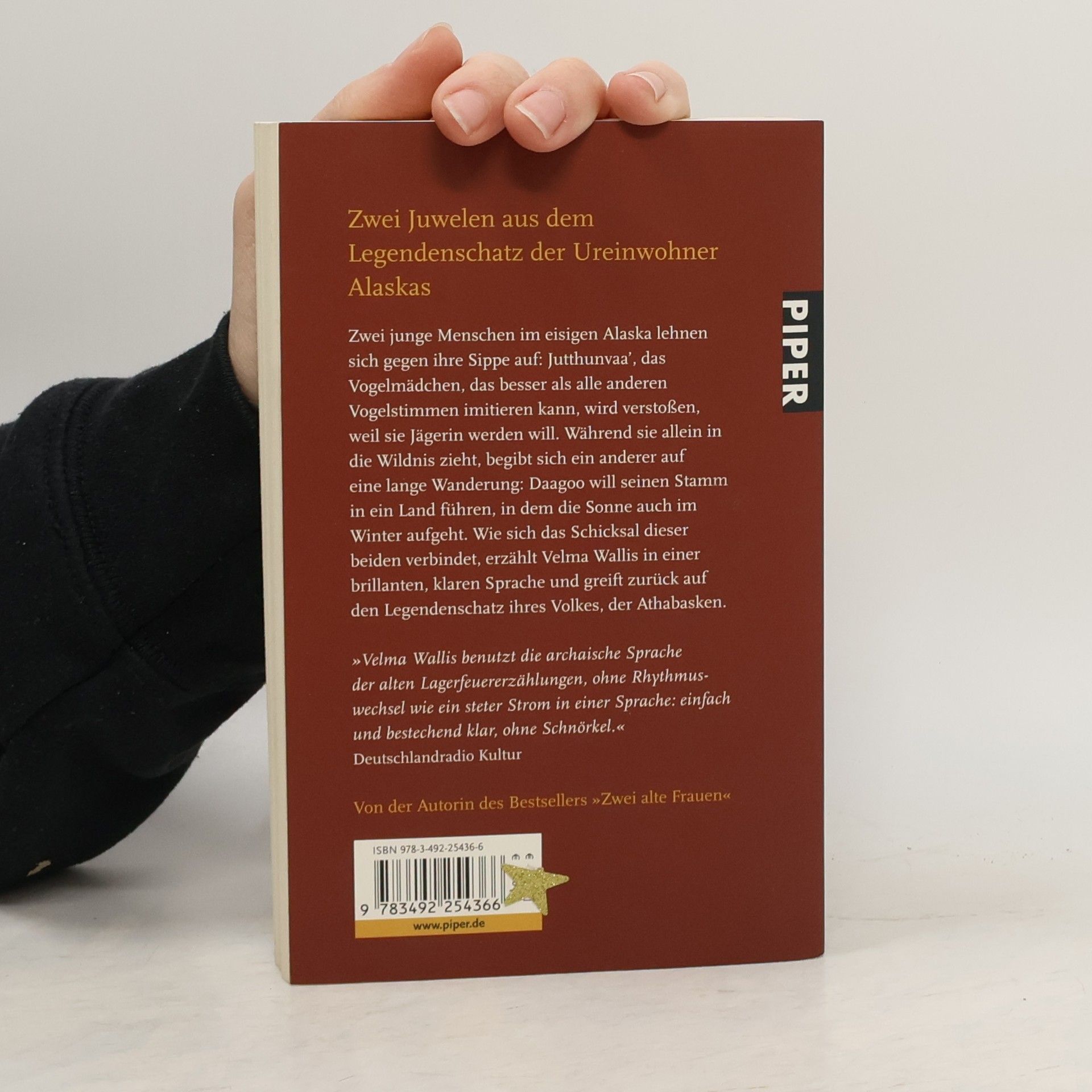 Zwei junge Menschen im eisigen Alaska lehnen sich gegen ihre Sippe auf: Jutthunvaa’, das Vogelmädchen, das besser als alle anderen Vogelstimmen imitieren kann, wird verstoßen, weil sie Jägerin werden will. Während sie allein in die Wildnis zieht, begibt sich ein anderer auf eine lange Wanderung: Daagoo will seinen Stamm in ein Land führen, in dem die Sonne auch im Winter aufgeht. Wie sich das Schicksal dieser beiden verbindet, erzählt Velma Wallis mit einer brillanten, klaren Sprache und greift zurück auf den Legendenschatz ihres Volkes, der Athabasken.