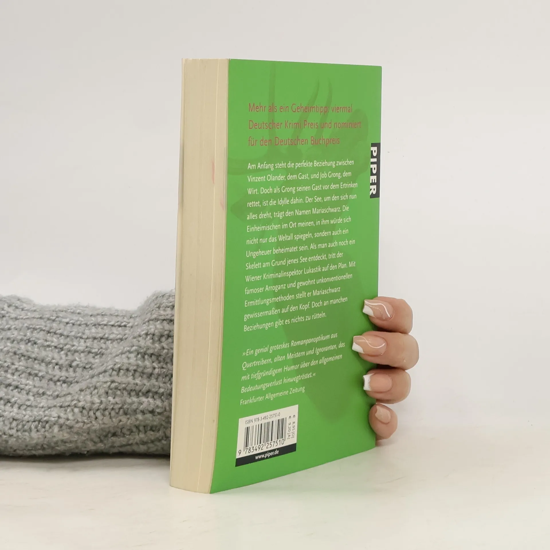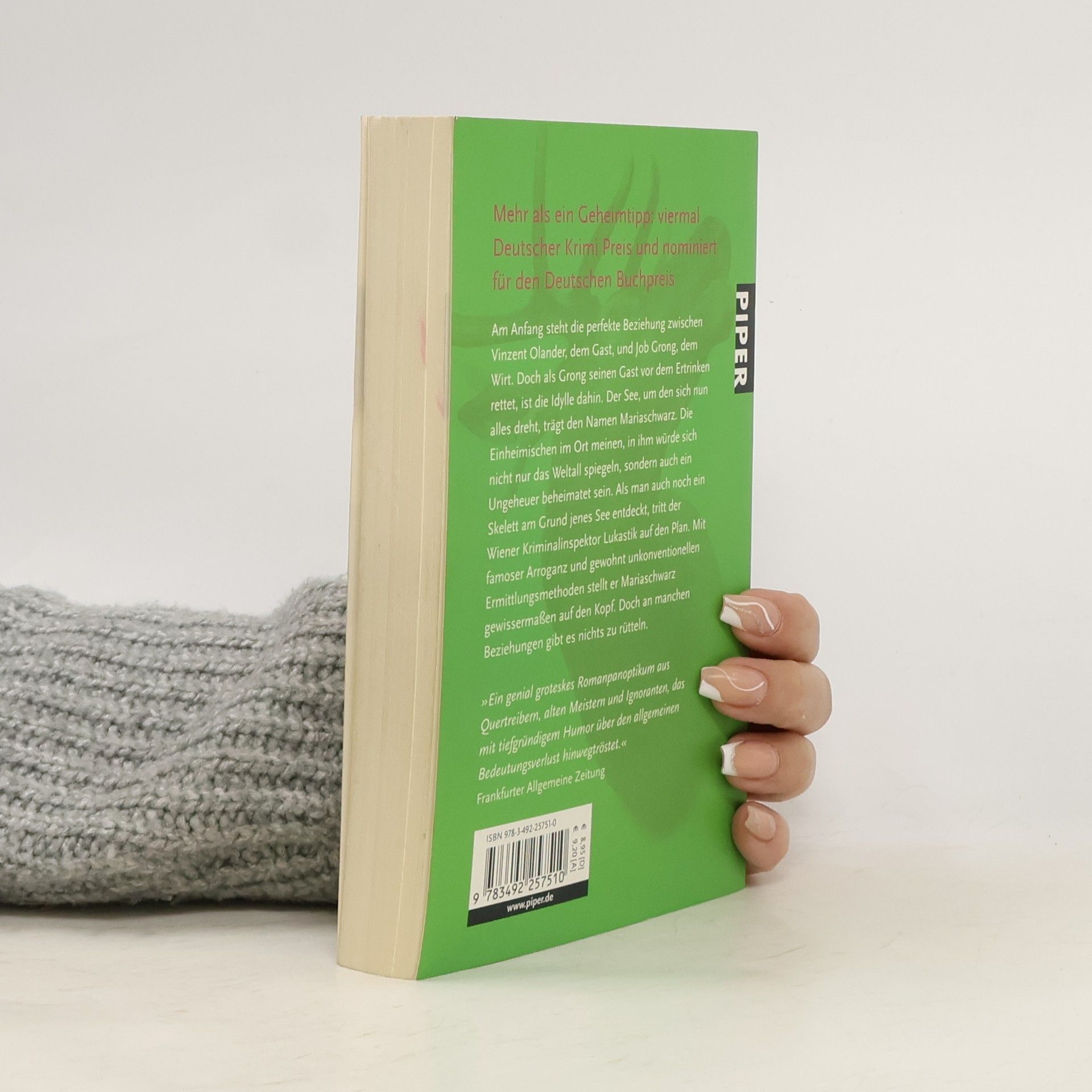 Am Anfang steht die perfekte Beziehung zwischen Vinzent Olander, dem Gast, und Job Grong, dem Wirt. Doch als Grong seinen Gast vor dem Ertrinken rettet, ist die Idylle dahin. Der See, um den sich nun alles dreht, trägt den Namen Mariaschwarz. Die Einheimischen im Ort meinen, in ihm würde sich nicht nur das Weltall spiegeln, sondern auch ein Ungeheuer beheimatet sein. Als man auch noch ein Skelett am Grund jenes See entdeckt, tritt der Wiener Kriminalinspektor Lukastik auf den Plan. Mit famoser Arroganz und gewohnt unkonventionellen Ermittlungsmethoden stellt er Mariaschwarz gewissermaßen auf den Kopf. Doch an manchen Beziehungen gibt es nichts zu rütteln.