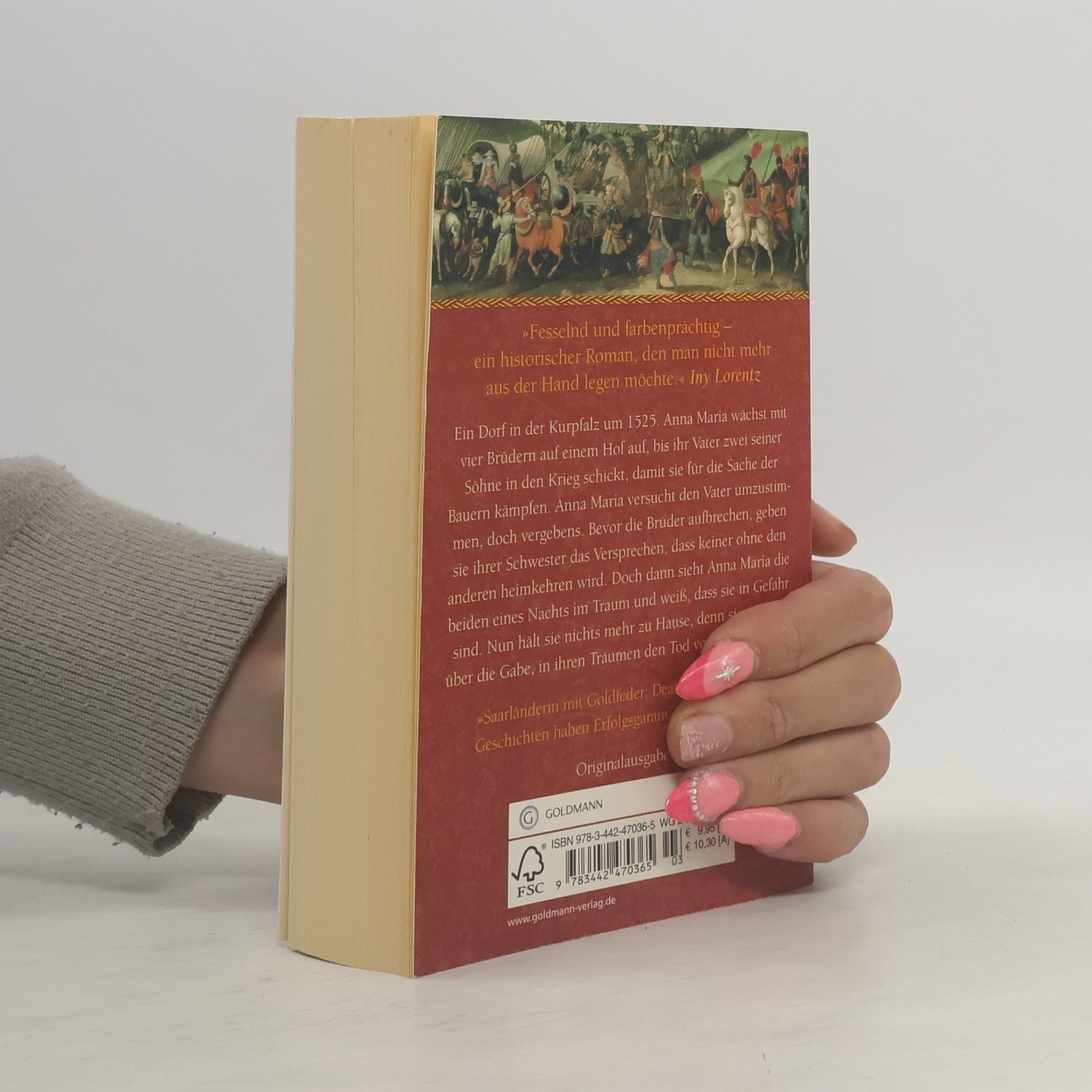 Die gefährliche Reise einer eigenwilligen jungen Frau in den Wirren der Bauernkriege Ein Dorf in der Kurpfalz um 1525. Anna Maria wächst mit vier Brüdern auf einem Hof auf. Als ihr Vater zwei seiner Söhne in den Krieg schickt, damit sie für die Sache der Bauern kämpfen, versucht Anna Maria ihn umzustimmen, doch vergebens. Bevor die Brüder aufbrechen, geben sie ihrer Schwester das Versprechen, dass keiner ohne den anderen heimkehren wird. Doch dann sieht Anna Maria die beiden eines Nachts im Traum und weiß, dass sie in Gefahr sind. Nun hält sie nichts mehr zu Hause, denn sie verfügt über die Gabe, in ihren Träumen den Tod vorherzusehen …