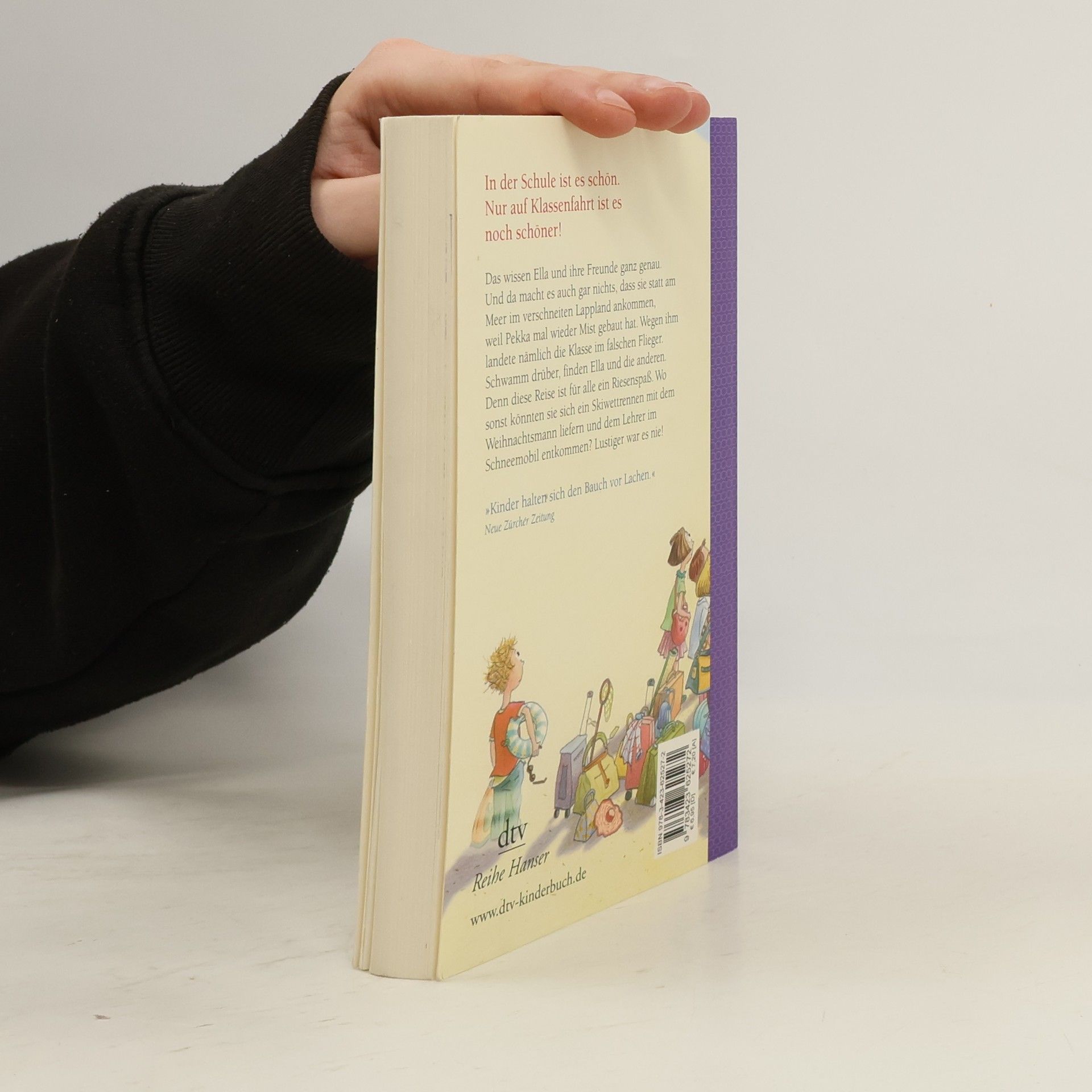 Das dritte Ella-Abenteuer In der Schule ist es schön, weil dort so viele lustige Sachen passieren. Nur auf Klassenfahrt ist es noch schöner. Eigentlich sollte die Reise in den Süden gehen, wo es einen Sandstrand und Liegestühle und extragroße Eisportionen gibt. Ellas Klasse hat den Wettbewerb um das lustigste Klassenfoto gewonnen, und die Reise war der erste Preis. Sie haben nur leider den falschen Flieger erwischt. Und jetzt sind alle zusammen in Kittikä, statt irgendwo im Süden, gelandet. Das liegt in Lappland, wo es im Mai noch schneit, ungefähr dort, wo der Weihnachtsmann wohnen soll. Was Ella und ihre Freunde dort erleben und wie sie wieder nach Hause kommen, davon erzählt das dritte ›Ella‹-Buch. Zu diesem Buch finden Sie Quizfragen auf antolin. de