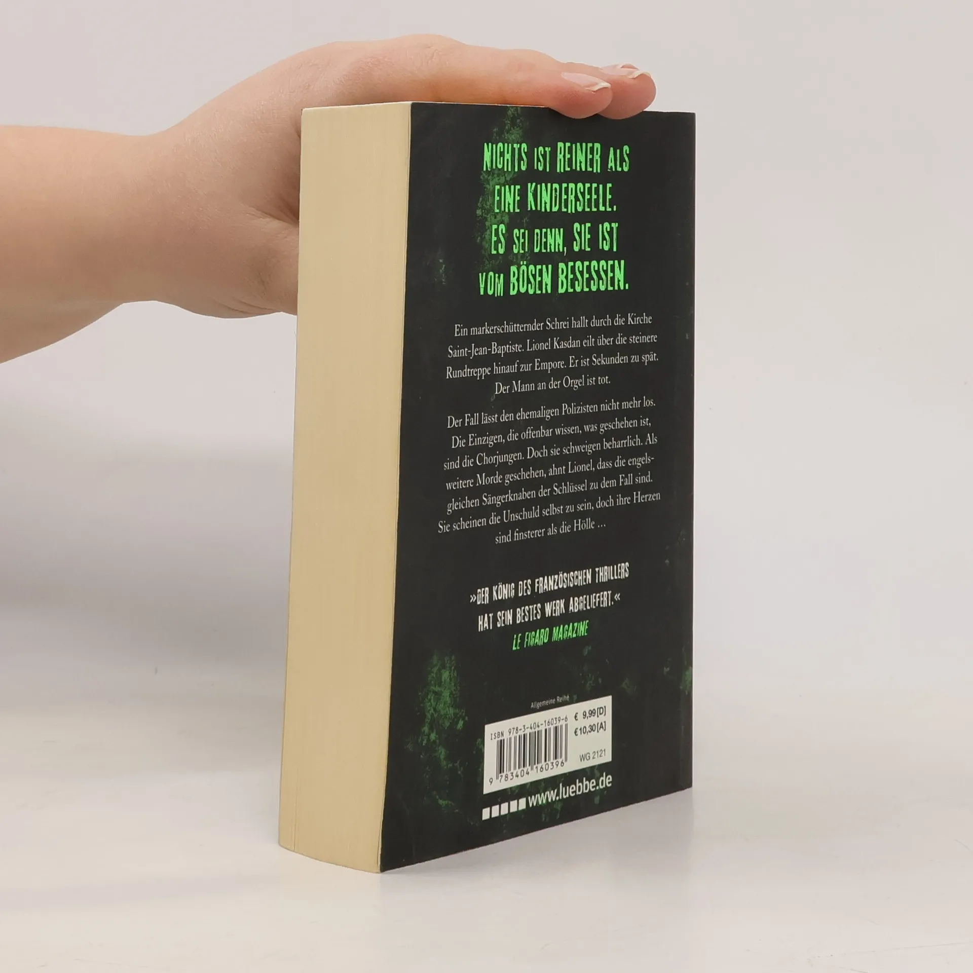 Ein markerschütternder Schrei hallt durch die Kirche Saint-Jean-Baptiste. Lionel Kasdan eilt über die steinere Rundtreppe hinauf zur Empore. Er ist Sekunden zu spät. Der Mann an der Orgel ist tot. Der Fall lässt den ehemaligen Polizisten nicht mehr los. Die Einzigen, die offenbar wissen, was geschehen ist, sind die Chorjungen. Doch sie schweigen beharrlich. Als weitere Morde geschehen, ahnt Lionel, dass die engelsgleichen Sängerknaben der Schlüssel zu dem Fall sind. Sie scheinen die Unschuld selbst zu sein, doch ihre Herzen sind finsterer als die Hölle …