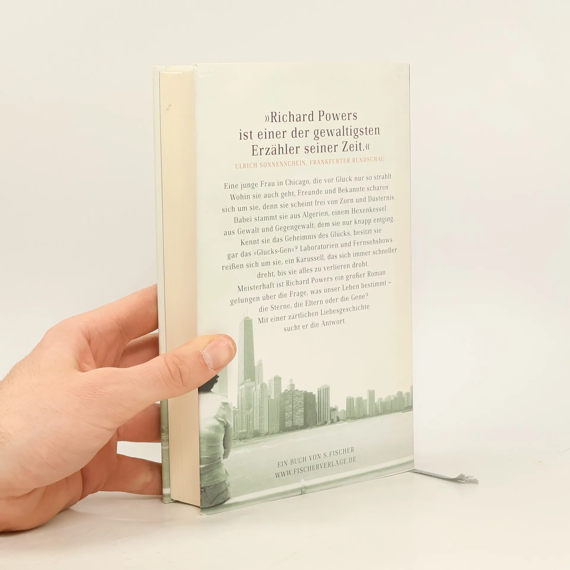 Greift die Zukunft nach uns oder wir nach der Zukunft? Susanne Weingarten, BRIGITTE Eine junge Frau in Chicago, die vor Glück nur so strahlt. Sie lebt völlig ohne Zorn, alle Freunde und Bekannte kreisen nur um sie. Doch sie stammt aus Algerien, einem Hexenkessel aus Gewalt und Gegengewalt, dem sie nur knapp entging. Kennt sie das Geheimnis des Glücks, besitzt sie gar das „Glücks-Gen“? Laboratorien und Fernsehshows reißen sich um sie, ein Karussell, das sich immer schneller dreht, bis sie alles zu verlieren droht. Meisterhaft ist Richard Powers ein großer Roman gelungen über die Frage, was unser Leben bestimmt – die Sterne, die Eltern oder liegt alles in den Genen? Mit einer zärtlichen Liebesgeschichte sucht er die Antwort: Greift die Zukunft nach uns oder wir nach der Zukunft?