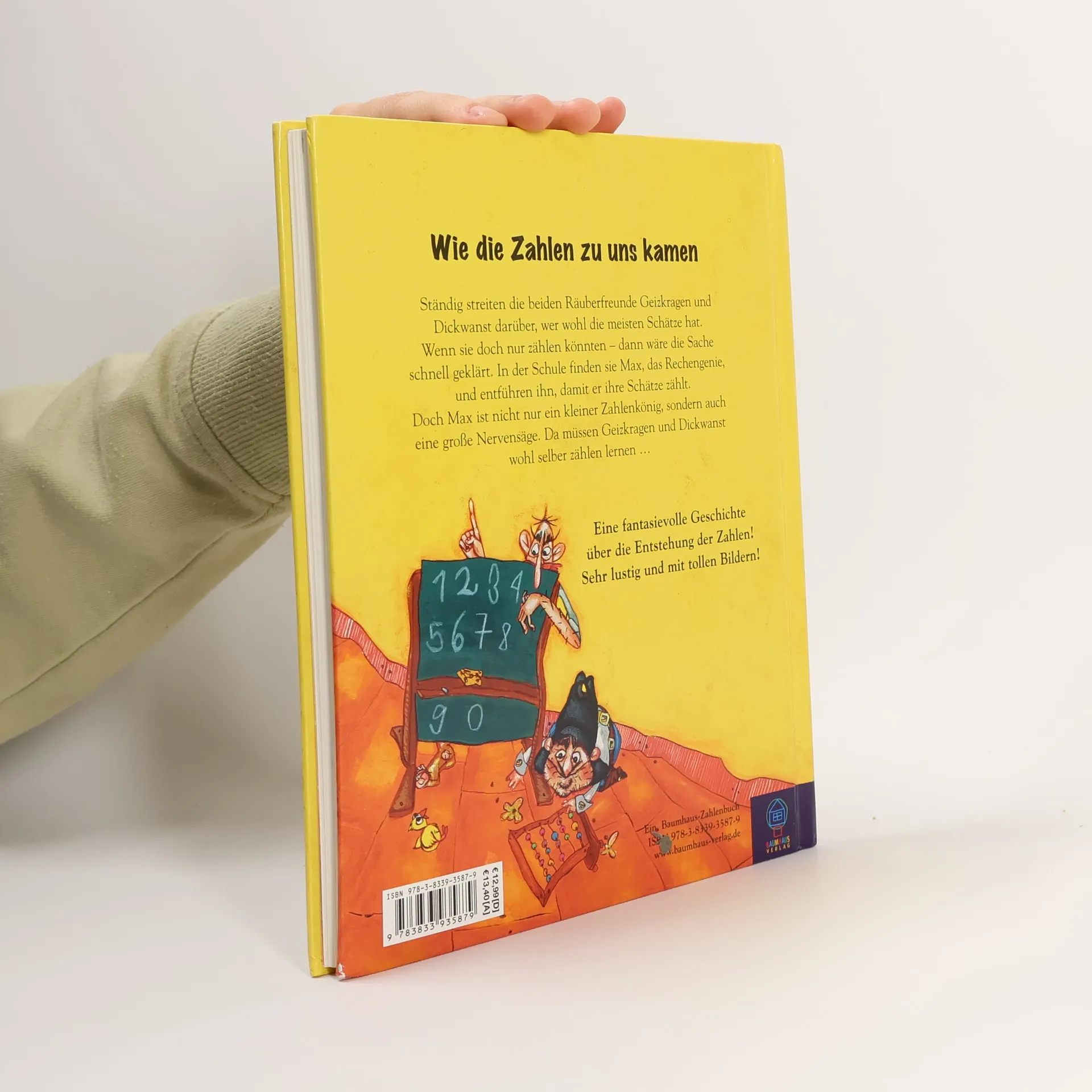 Ständig kriegen sich die beiden Räuberfreunde Geizkragen und Dickwanst darüber in die Haare, wer wohl die meisten Schätze in seiner Kammer hortet. Wenn sie doch nur zählen könnten. Dann wäre die Sache schnell geklärt. In sogenannten Schulen soll es Menschen geben, die des Zählens mächtig sind. Kurzerhand machen sie sich auf den Weg in eine Schule und entführen den Zahlenakrobat Max. Soll der doch ihre Schätze zählen. Doch Max ist nicht nur ein kleiner Zahlenkönig, sondern auch eine riesige Nervensäge. Es hilft alles nichts. Um Max loszuwerden, müssen Geizkragen und Dickwanst selber zählen lernen. Lustige und fantasievolle Parabel über die Entstehung der Zahlen Perfekt geeignet für Erst- und Zweitklässler und zum gemeinsamen Lesen Der Autor steht für Lesungen zur Verfügung