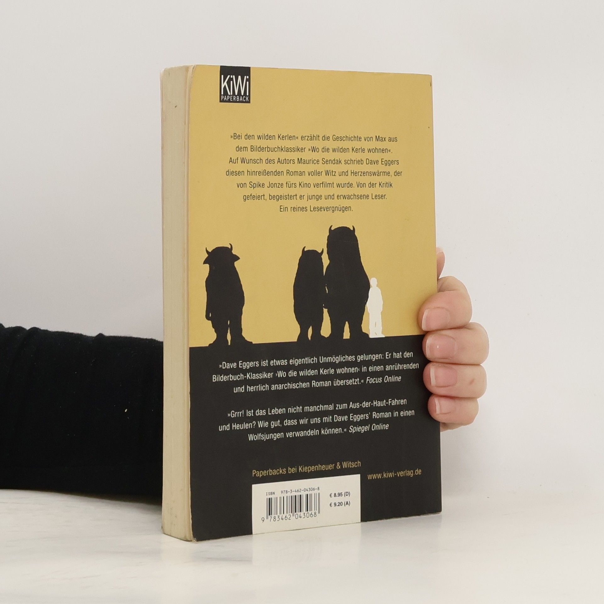 Der Klassiker von Maurice Sendak als herrlich anarchischer Roman Bei den wilden Kerlen der hinreißende All-Age-Roman von Dave Eggers, entstand auf Wunsch von Maurice Sendak, dem Autor des Bilderbuch-Klassikers Wo die wilden Kerle wohnen. Eggers’ Roman wurde von Spike Jonze fürs Kino verfilmt. Roman und Film wurden von der Kritik gefeiert und sind ein anhaltender Publikumserfolg. Der achtjährige Max, Sohn getrennter Eltern, frech, wild und sensibel zugleich, rennt nach einem Streit mit seiner Mutter von zu Hause fort und kommt nach langer Fahrt übers Meer zur Insel, wo die wilden Kerle wohnen: riesige, launenhafte Wesen, die ihn bald zu ihrem König machen. Ein phantastisches Abenteuer beginnt, das Max im Innersten verändert.