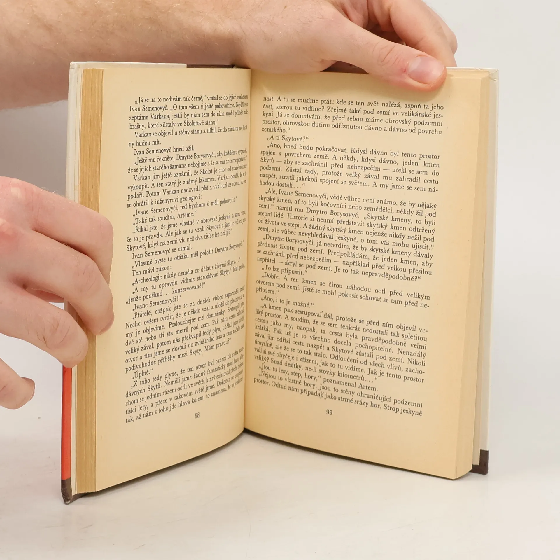 Vědeckofantastický román vypráví o skupině čtyř sovětských výzkumníků, kteří při archeologickém a geologickém průzkumu jeskyně narazí na dosud tam žijící kočovný kmen pravěkých Skytů. Jsou jím zajati, prožijí plno dramatických chvil a zblízka poznají život a zvyky i prostředíkmene.
