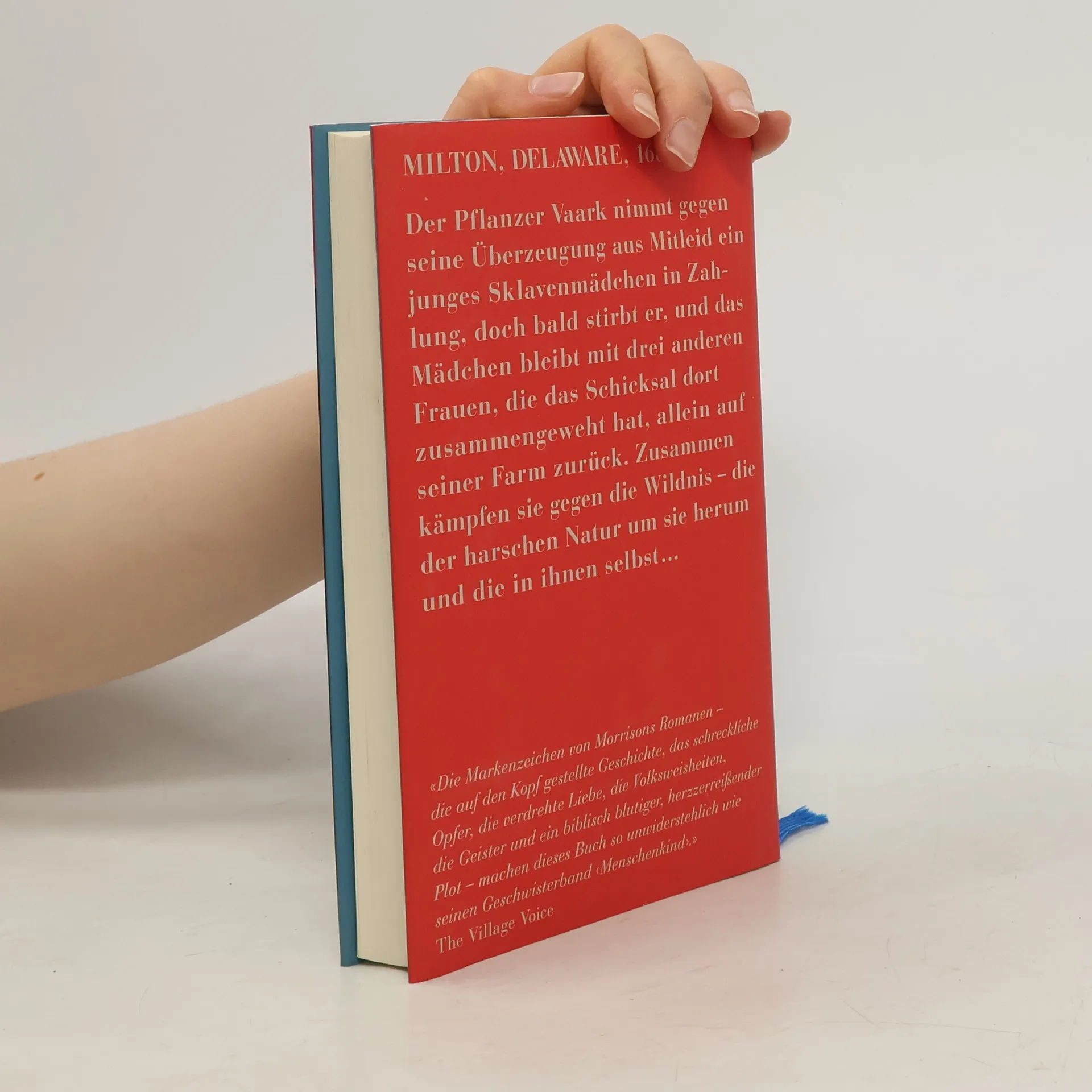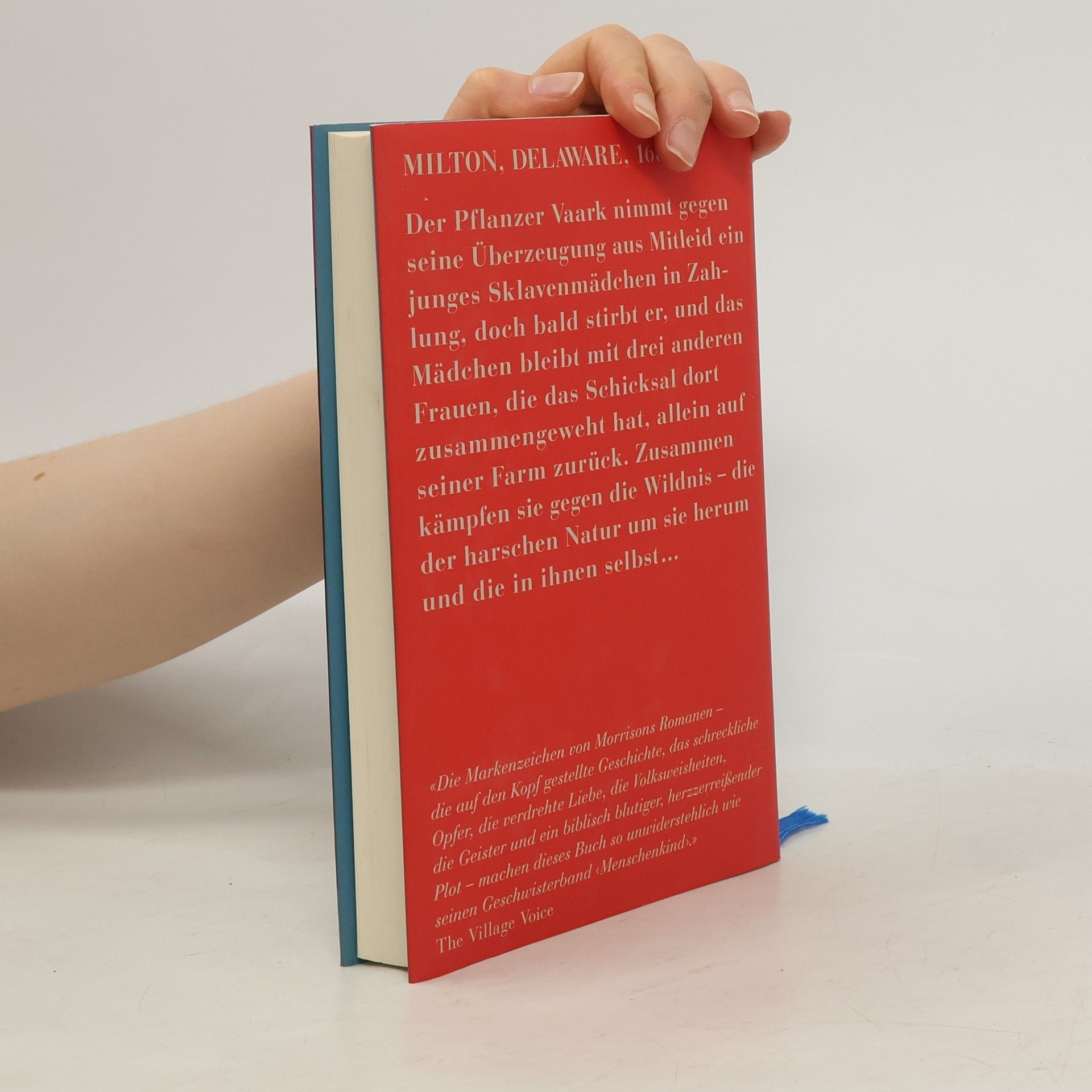 MILTON, DELAWARE, 1682 Der Pflanzer Vaark nimmt gegen seine Überzeugung aus Mitleid ein junges Sklavenmädchen in Zahlung, doch bald stirbt er, und das Mädchen bleibt mit drei anderen Frauen, die das Schicksal dort zusammengeweht hat, allein auf seiner Farm zurück. Zusammen kämpfen sie gegen die Wildnis – die der harschen Natur um sie herum und die in ihnen selbst …« Die Markenzeichen von Morrisons Romanen – die auf den Kopf gestellte Geschichte, das schreckliche Opfer, die verdrehte Liebe, die Volksweisheiten, die Geister und ein biblisch blutiger, herzzerreißender Plot – machen dieses Buch so unwiderstehlich wie seinen Geschwisterband ‹ Menschenkind ›.» The Village Voice