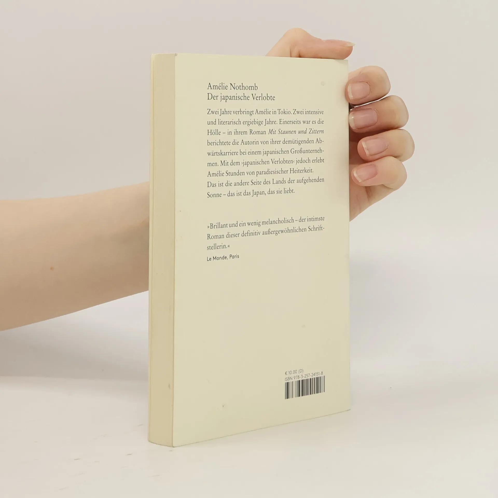 Zwei Jahre verbringt Amélie in Tokio. Zwei intensive und literarisch ergiebige Jahre. Einerseits war es die Hölle in Mit Staunen und Zittern berichtete die Autorin von ihrer demütigenden Abwärtskarriere bei einem japanischen Großunternehmen. Mit dem japanischen Verlobten jedoch erlebt Amélie Stunden von paradiesischer Heiterkeit. Das ist die andere Seite des Lands der aufgehenden Sonne das ist das Japan, das sie liebt.