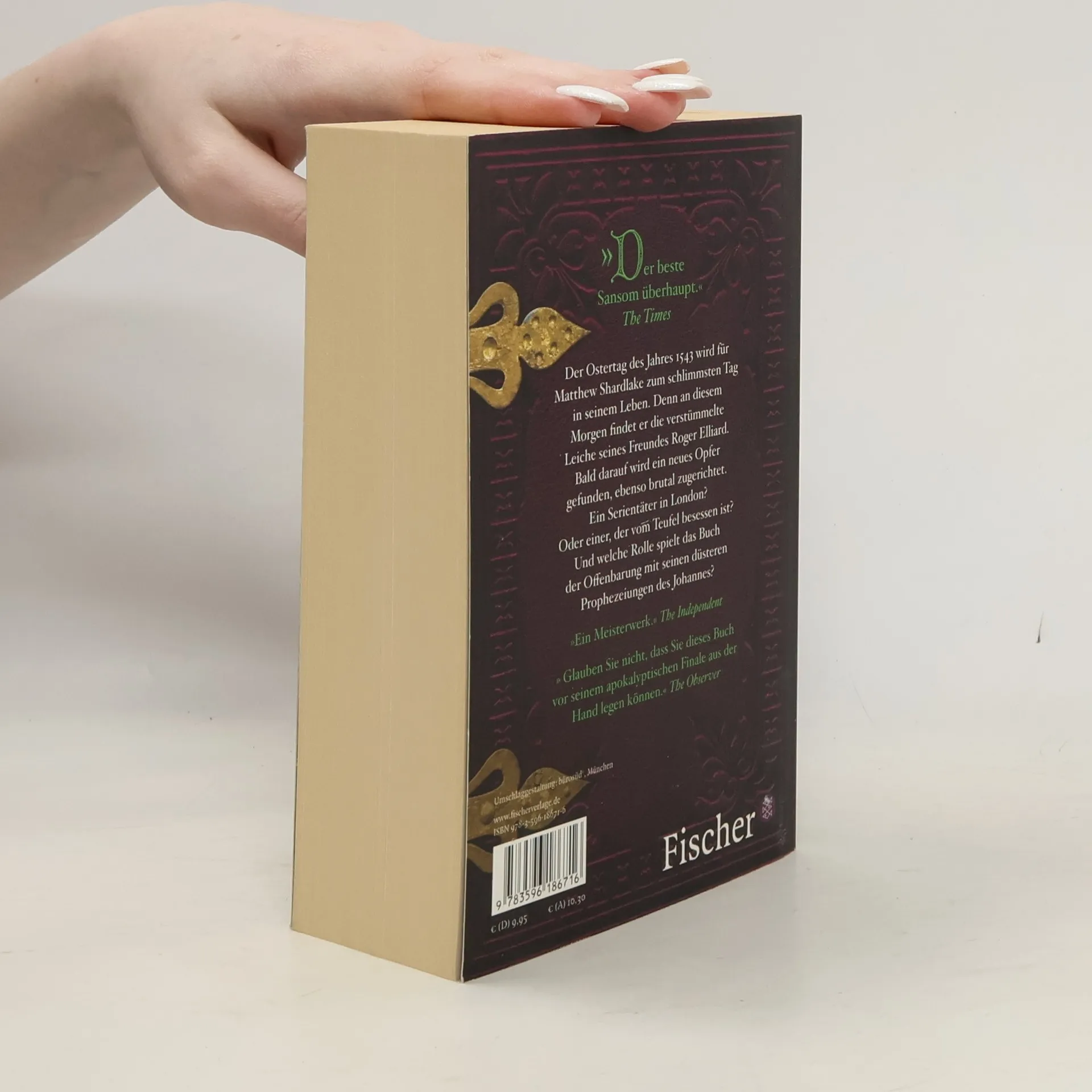 Der Nr.1 Bestseller aus England ›Der beste Sansom überhaupt‹ The Times Der Ostertag des Jahres 1543 wird für Anwalt Matthew Shardlake zum schlimmsten Tag in seinem Leben. Denn an diesem Morgen findet er die brutal zugerichtete Leiche seines Freundes Roger Elliard in einem Brunnen. Bald darauf wird ein neues Opfer gefunden, ebenso brutal zugerichtet, und wie Elliard liegt auch dieser Leichnam in blutrotem Wasser. Ein Glaubenseiferer, der auf diese Weise das Ende der Welt herbeiführen will? Oder einer, der vom Teufel besessen ist? Und welche Rolle spielt das Buch der Offenbarung nach Johannes mit seinen apokalyptischen Prophezeiungen? Matthew Shardlake fürchtet, dass es noch weitere Opfer geben wird.