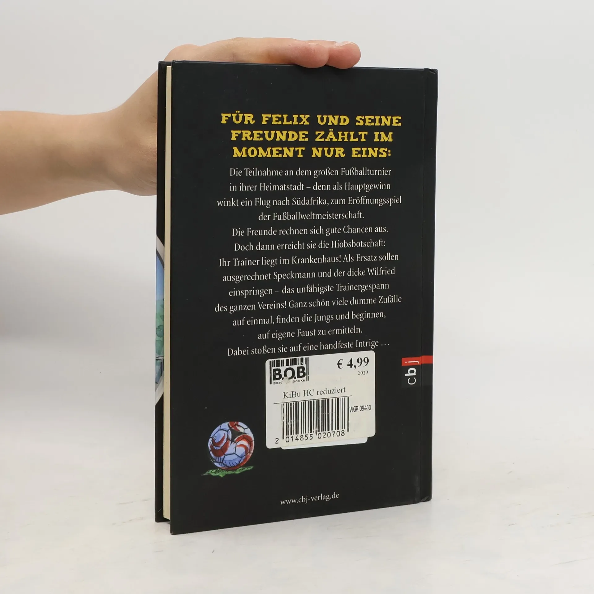 Ein spannender Krimi rund um das Top-Thema Fußball Felix' Fußballmannschaft ist heiß auf die Mini-WM in ihrer Heimatstadt – denn als Hauptgewinn winkt ein Flug nach Südafrika, zum Eröffnungsspiel der „echten“ WM. Die Freunde rechnen sich gute Siegchancen aus. Doch dann erreicht sie die Hiobsbotschaft: Ihr Trainer muss ins Krankenhaus! Und als Ersatz springen ausgerechnet Speckmann und der dicke Wilfried ein – das unfähigste Trainergespann des Vereins! Ergebnis: Das Training ist überhart, die Aufstellung ein Witz, die Taktik eine Katastrophe. Für Felix und seine Freunde steht fest: Wenn sie gewinnen wollen, müssen sie Speckmann ein Schnippchen schlagen. Und dabei kommen sie einer handfesten Intrige auf die Spur. Packend und sachkundig erzählt von Fußballexperte Knut Krüger.