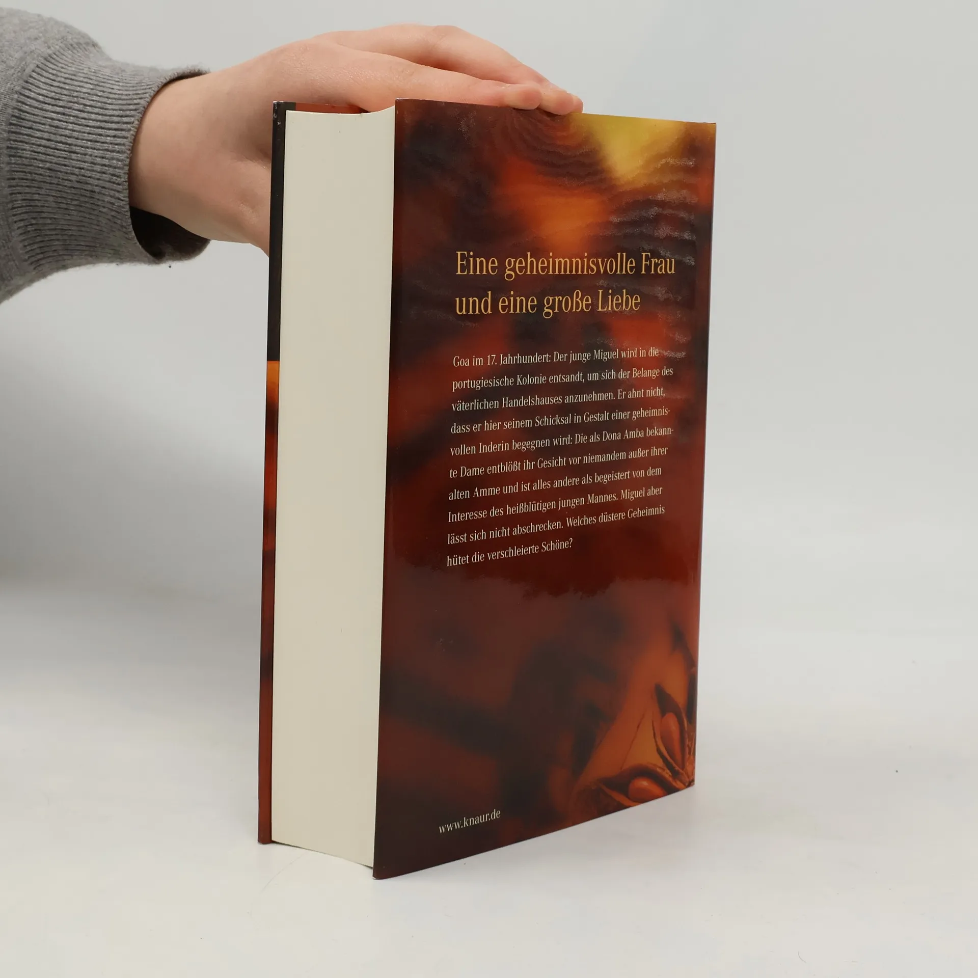 Goa im 17. Jahrhundert: Der junge Miguel wird in die portugiesische Kolonie entsandt, um sich der Belange des väterlichen Handelshauses anzunehmen. Er ahnt nicht, dass er hier seinem Schicksal in Gestalt einer geheimnisvollen Inderin begegnen wird: Die als Dona Amba bekannte Dame entblößt ihr Gesicht vor niemandem außer ihrer alten Amme und ist alles andere als begeistert von dem Interesse des heißblütigen jungen Mannes. Miguel aber lässt sich nicht abschrecken. Welches düstere Geheimnis hütet die verschleierte Schöne?