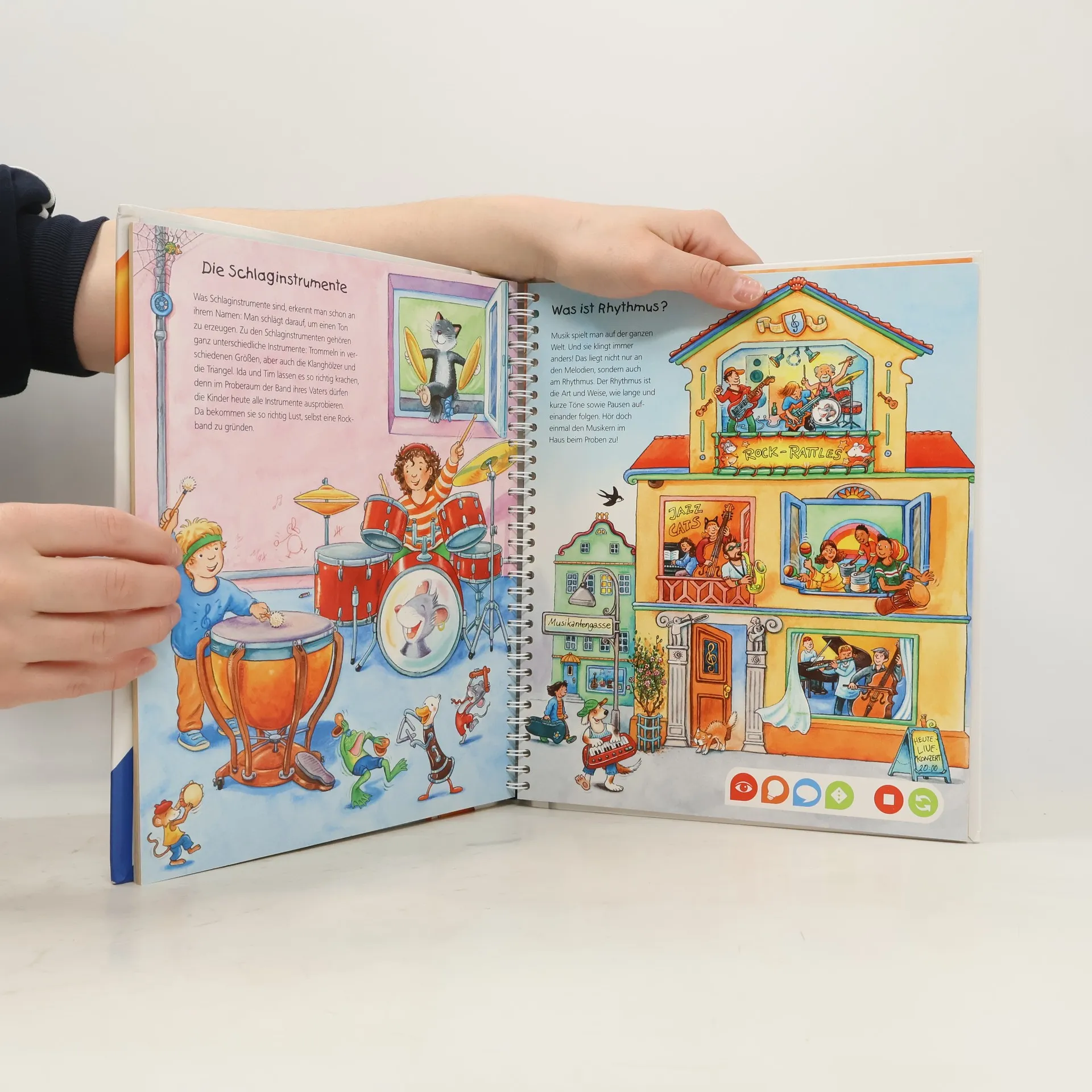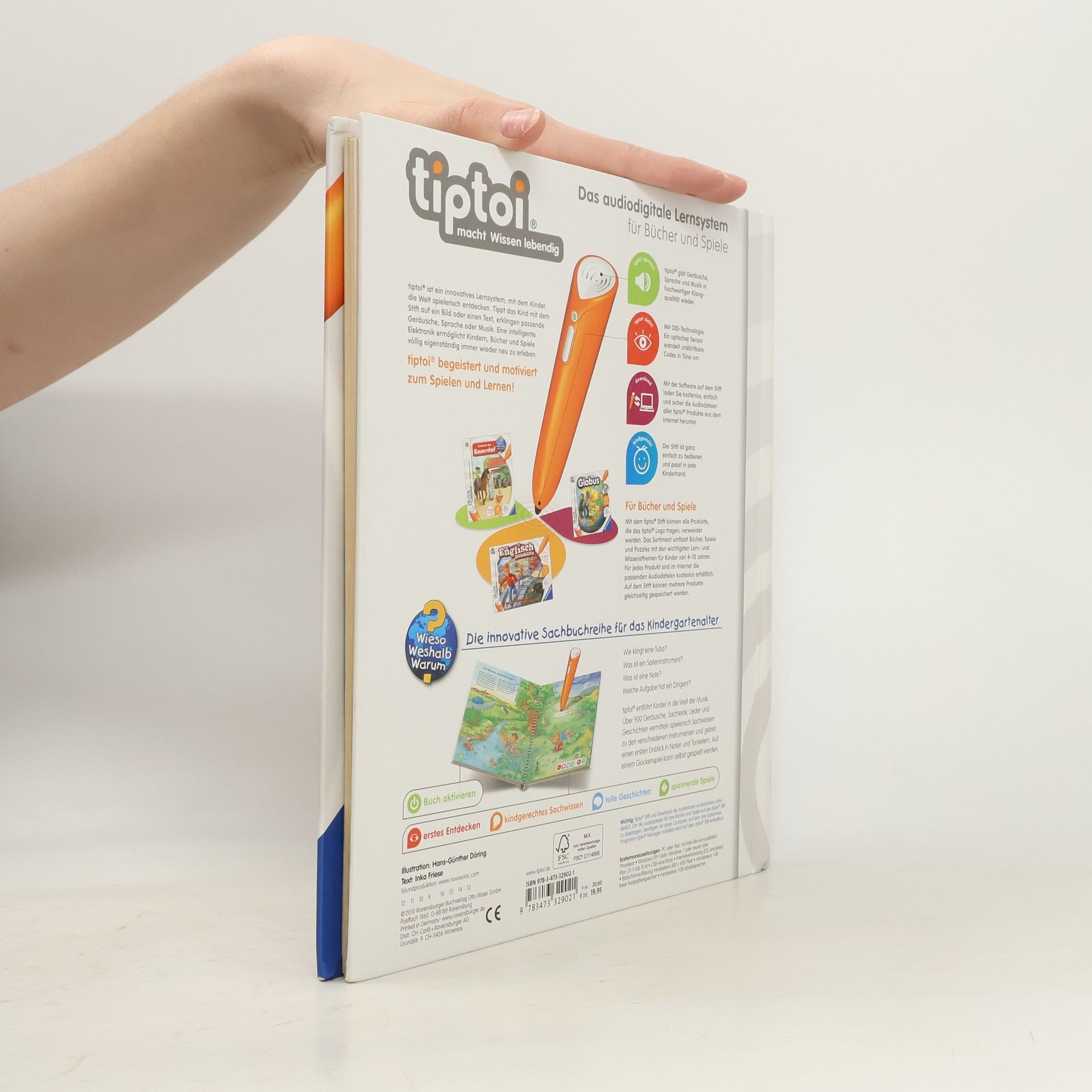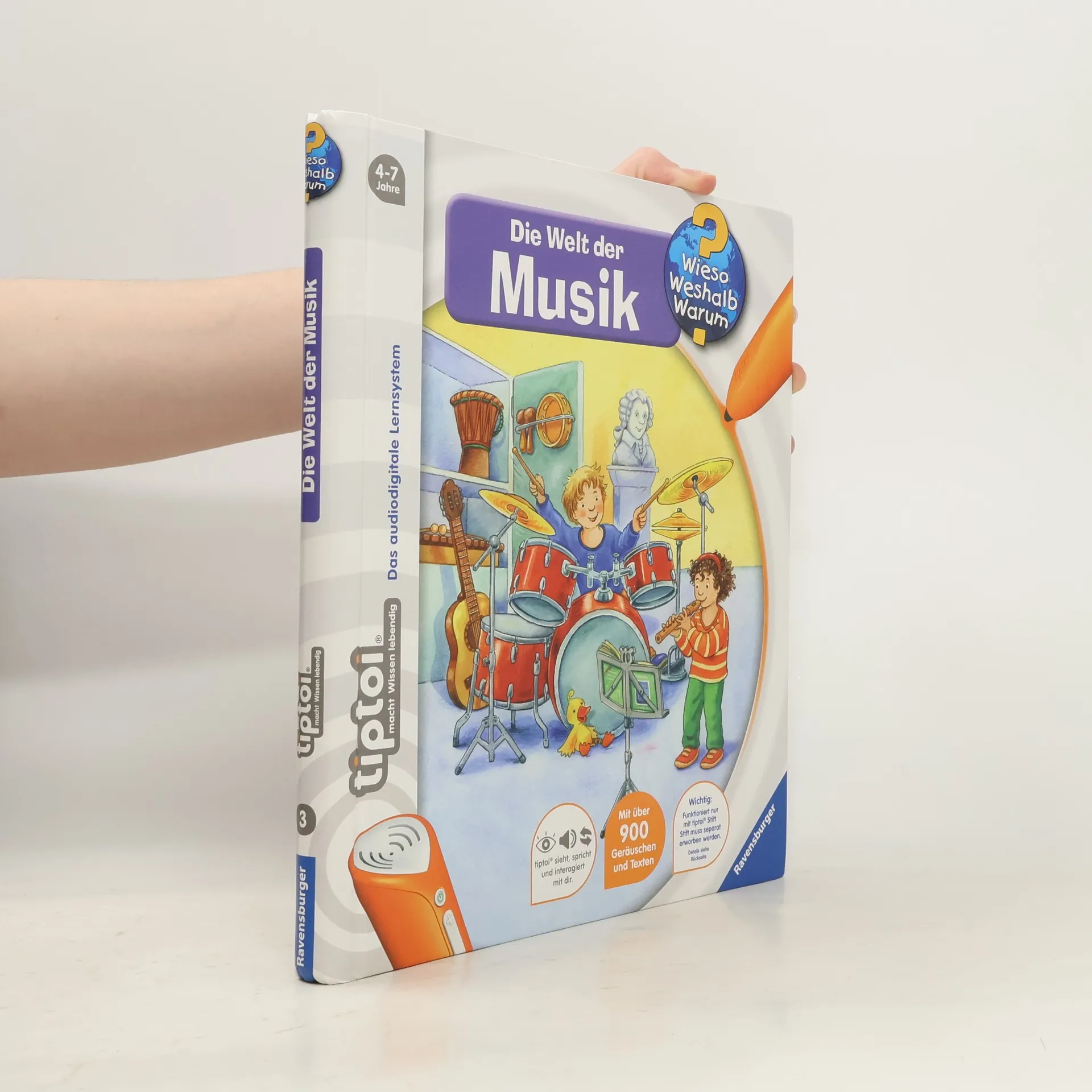 Ohren auf: Willkommen in der Welt der Musik! Dieses Buch steckt voller Musik: vom Basiswissen darüber, wie der Ton in unser Ohr kommt, über die verschiedenen Musikinstrumente bis hin zu der Frage, was Rhythmus ist. Außerdem kann mit dem tiptoi-Stift auf einem Xylophon gespielt und einem richtigen Orchester gelauscht werden. Was macht der Traktor auf dem Feld? Wann kommt die Feuerwehr? Wie groß wird ein Pony? Die interaktive Sachbuchreihe tiptoi Wieso? Weshalb? Warum? beantwortet wichtige Kinderfragen auf Augenhöhe. Auf den liebevoll illustrierten Seiten tauchen die Kinder in eine Welt ein, die durch zahlreiche authentische Geräusche lebendig wird. Das Sachwissen wird altersgerecht erklärt und ist fachlich geprüft. Die Kinder können sich dank der einfachen und intuitiven Nutzung mit dem tiptoi-Stift das Wissen selbst erschließen. Sie lernen, Zusammenhänge zu begreifen und erfahren spannende Informationen über ihren Alltag und ihre Umwelt. Tolle Geschichten, Lieder und unterhaltsame Spiele laden dabei immer wieder zum selbstständigen Entdecken und Erforschen ein. tiptoi-Stift nicht enthalten. Muss separat erworben werden.