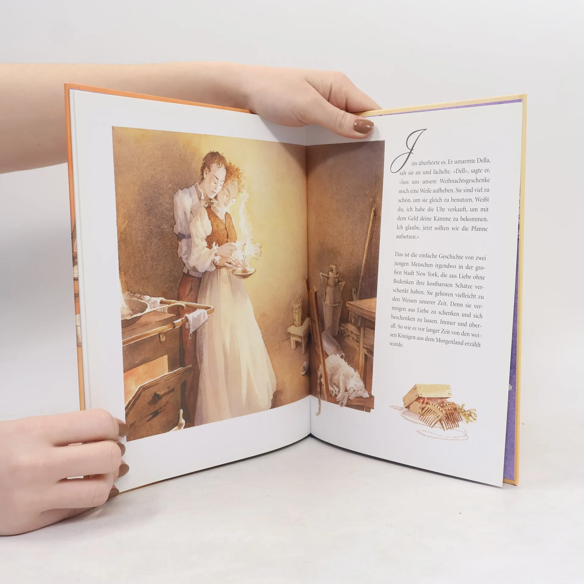 Weihnachten um 1900 in New York: Wie gern würden sich Della und Jim gegenseitig beschenken. Doch sie besitzen keinen müden Penny. Und so trennen sie sich aus Liebe von ihren kostbarsten Schätzen … Mit dieser Geschichte, die deutlich macht, was – gerade an Weihnachten – wirklich zählt, wurde der amerikanische Shriftsteller O. Henry in der ganzen Welt bekannt.