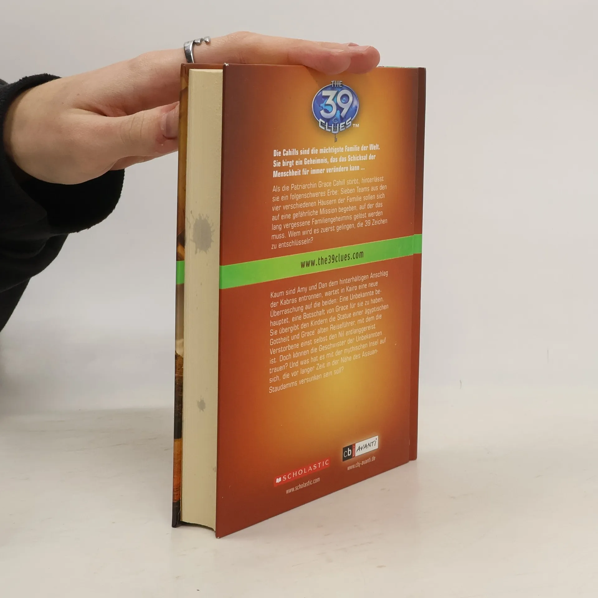 39 geheimnisvolle Zeichen. Eine unglaubliche Mission. Und ein Geheimnis, das das Schicksal der ganzen Welt verändern kann. Kaum sind Dan und Amy dem gemeinen Anschlag der Kabras entronnen, wartet in Kairo eine neue Überraschung auf die beiden: Eine Unbekannte behauptet, Grace beste Freundin gewesen zu sein und eine Botschaft für sie zu haben. Sie übergibt den Kindern die Statue einer ägyptischen Gottheit und Grace alten Reiseführer, mit dem sie selbst den Nil entlang gereist ist. Doch können Dan und Amy der Unbekannten trauen?