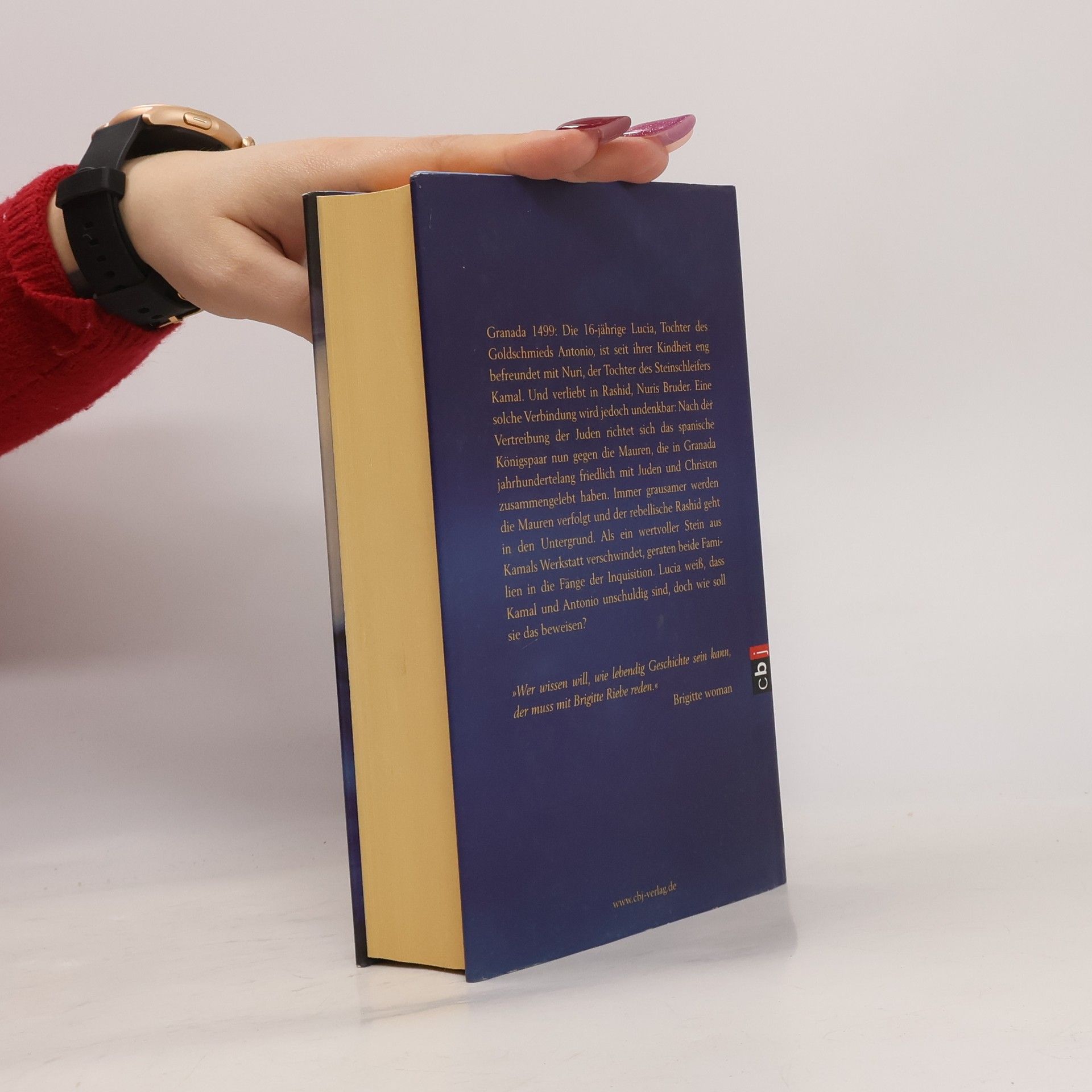 Packender Thriller und mitreißende Liebesgeschichte Granada 1499: Die 16-jährige Lucia, Tochter des Goldschmieds Antonio, ist seit ihrer Kindheit eng befreundet mit Nuri, der Tochter des Steinschleifers Kamal. Und verliebt in Rachid, Nuris Bruder. Eine solche Verbindung wird jedoch undenkbar: Nach der Vertreibung der Juden richtet sich das spanische Königspaar nun gegen die Mauren, die in Granada jahrhundertelang friedlich mit Juden und Christen zusammengelebt haben. Kamal gerät in die Fänge der Inquisition, die ihre Fühler auch nach Antonio ausstreckt. Lucia ist verzweifelt. Da tritt Miguel auf den Plan, ein junger Steinschleifer, der Lucias Gefühle heftig durcheinanderbringt …