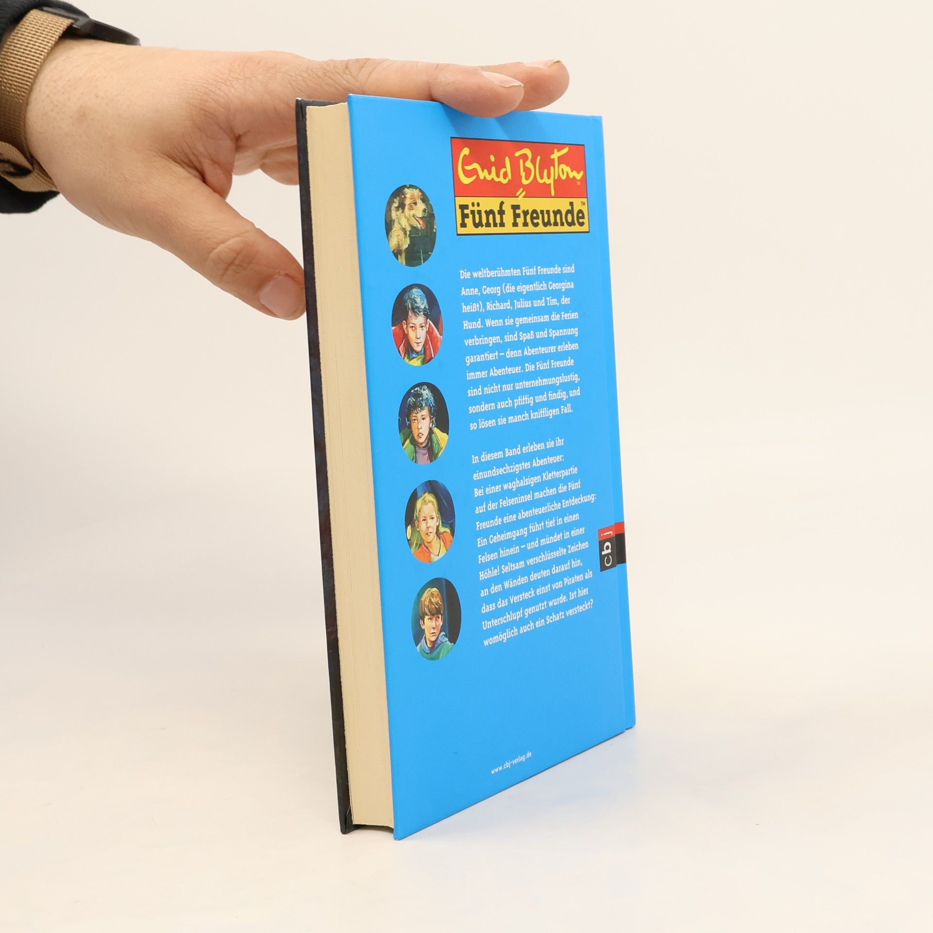 Bei einer waghalsigen Kletterpartie auf der Felseninsel machen die Fünf Freunde eine abenteuerliche Entdeckung: Ein Geheimgang führt tief in einen Felsen hinein – und mündet in einer Höhle! Seltsam verschlüsselte Zeichen an den Wänden deuten darauf hin, dass das Versteck einst von Piraten als Unterschlupf genutzt wurde. Jetzt ist die Kombinationsgabe der Fünf gefragt, die tatsächlich herausfinden, dass ein Nachfahre der Piraten immer noch lebt – und offenbar einen wertvollen Schatz hütet ... Ausstattung: Mit s/w Illustrationen