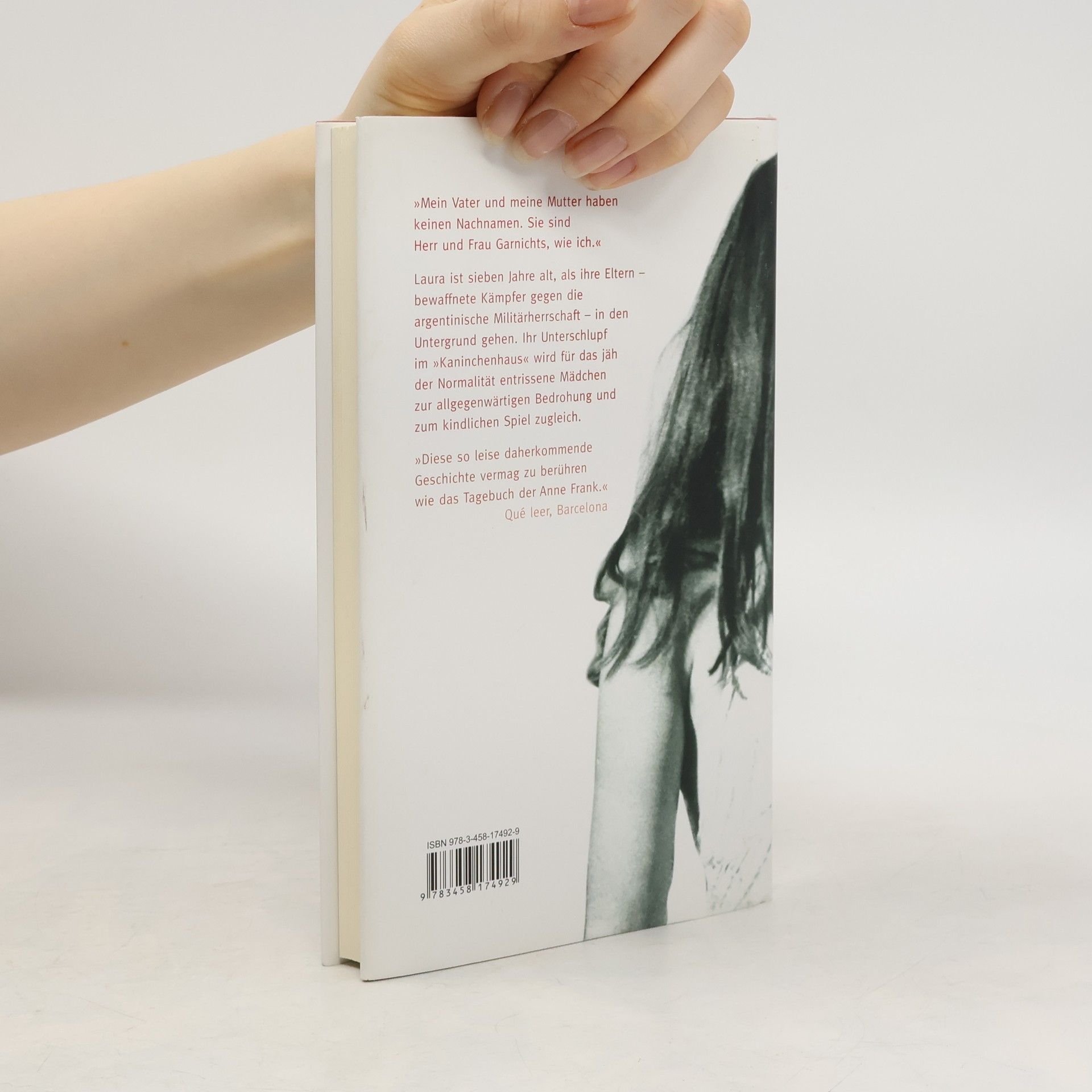 Mit sieben Jahren ist es schwer zu verstehen, warum der Vater im Gefängnis sitzt und die Mutter im Haus heimlich Flugblätter druckt. Aber Laura versteht. Auch, als sie nicht mehr in die Schule gehen soll, wegen der unangenehmen Fragen dort. Auch, als sie im Kofferraum eines Wagens zu ihren Großeltern gefahren wird. Und sie weiß, wie man auf der Straße Verfolger erkennt und warum sie unter falschem Namen lebt. Es sind die Jahre der Militärdiktatur in Argentinien. Die Montoneros, eine bewaffnete Widerstandsbewegung, der Lauras Eltern angehören, haben in dem heruntergekommenen Haus am Rande von La Plata eine geheime Druckerpresse eingerichtet. Nach außen rechtfertigt eine Kaninchenzucht die politischen Umtriebe der Bewegung. Ebenso beschützend wie bedrohlich, wird das Kaninchenhaus zum Unterschlupf für das jäh der Normalität entrissene Kind, das mit banger Faszination die Welt der Erwachsenen betritt. Aus der berührenden Sicht eines siebenjährigen Mädchens erzählt die argentinische Autorin Laura Alcoba von einer Kindheit, die zugleich Schrecken und Zauber birgt.