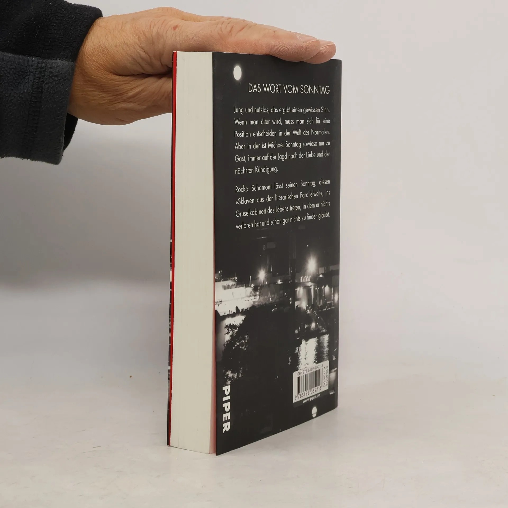 Unbeirrt treibt Michael Sonntag durch seine Tage, sein Körper zeigt erste Gebrauchsspuren, und die großen Gedanken machen gewöhnlich einen Bogen um ihn. Entgegen der Erwartungen, die seine Umwelt an ihn stellt, verweigert Sonntag gern jede daseinserhaltende Tätigkeit. Nur seinem Freund Novak gelingt es hin und wieder, ihn mit hirnrissigen Geschäftsideen aus der Reserve zu locken. Und natürlich Marion Vossreuther, der Servicekraft aus dem Handy-Laden, die einen ganz eigenen Reiz auf ihn ausübt. Entschlossen geht Rocko Schamonis Held Michael Sonntag den Erfordernissen des Lebens aus dem Weg. Und dabei fordert der Irrsinn unserer Existenz seine Unerschrockenheit und seinen Witz öfter heraus, als ihm lieb sein kann.