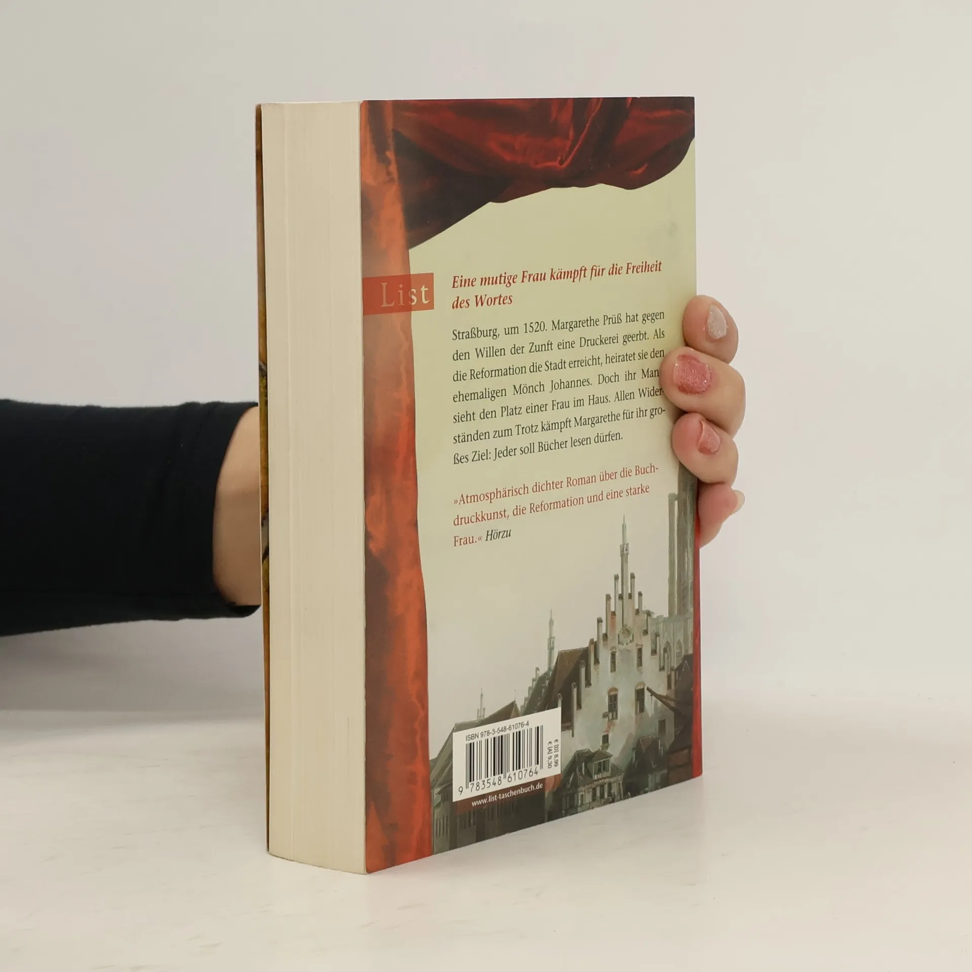 Straßburg um 1520. Margarethe Prüß hat gegen den Willen der Zunft eine Druckerei geerbt. Als die Reformation die Stadt erreicht, heiratet sie den ehemaligen Mönche Johannes. Doch ihr Mann sieht den Platz einer Frau im Haus. Allen Widerständen zum Trotz kämpft Margarethe für ihr großes Ziel: Jeder soll Bücher lesen dürfen.
