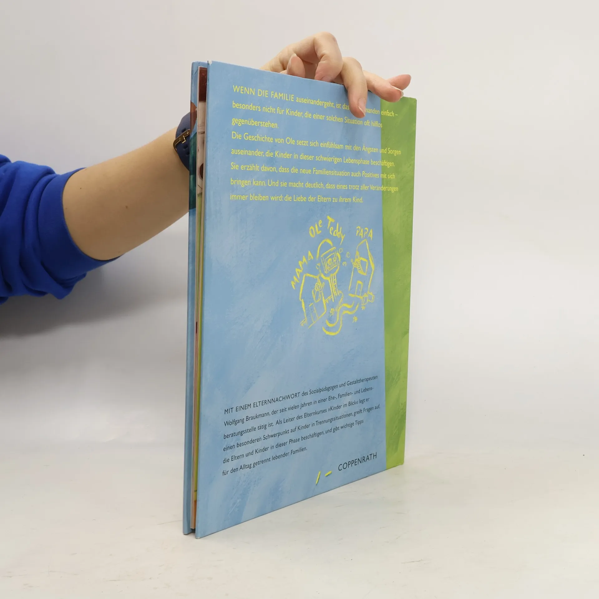 Wenn die Familie auseinandergeht, ist das für niemanden einfach – besonders nicht für Kinder, die einer solchen Situation oft hilflos gegenüberstehen. Die Geschichte von Ole setzt sich einfühlsam mit den Ängsten und Sorgen auseinander, die Kinder in dieser schwierigen Lebensphase beschäftigen. Sie erzählt davon, dass die neue Familiensituation auch Positives mit sich bringen kann. Und sie macht deutlich, dass eines trotz aller Veränderungen immer bleiben wird: die Liebe der Eltern zu ihrem Kind. Mit einem Elternnachwort des Sozialpädagogen und Gestalttherapeuten Wolfgang Braukmann, der seit vielen Jahren in einer Ehe-, Familien- und Lebensberatungsstelle tätig ist. Als Leiter des Elternkurses 'Kinder im Blick' legt er einen besonderen Schwerpunkt auf Kinder in Trennungssituationen, greift Fragen auf, die Eltern und Kinder in dieser Phase beschäftigen, und gibt wichtige Tipps für den Alltag getrennt lebender Familien.