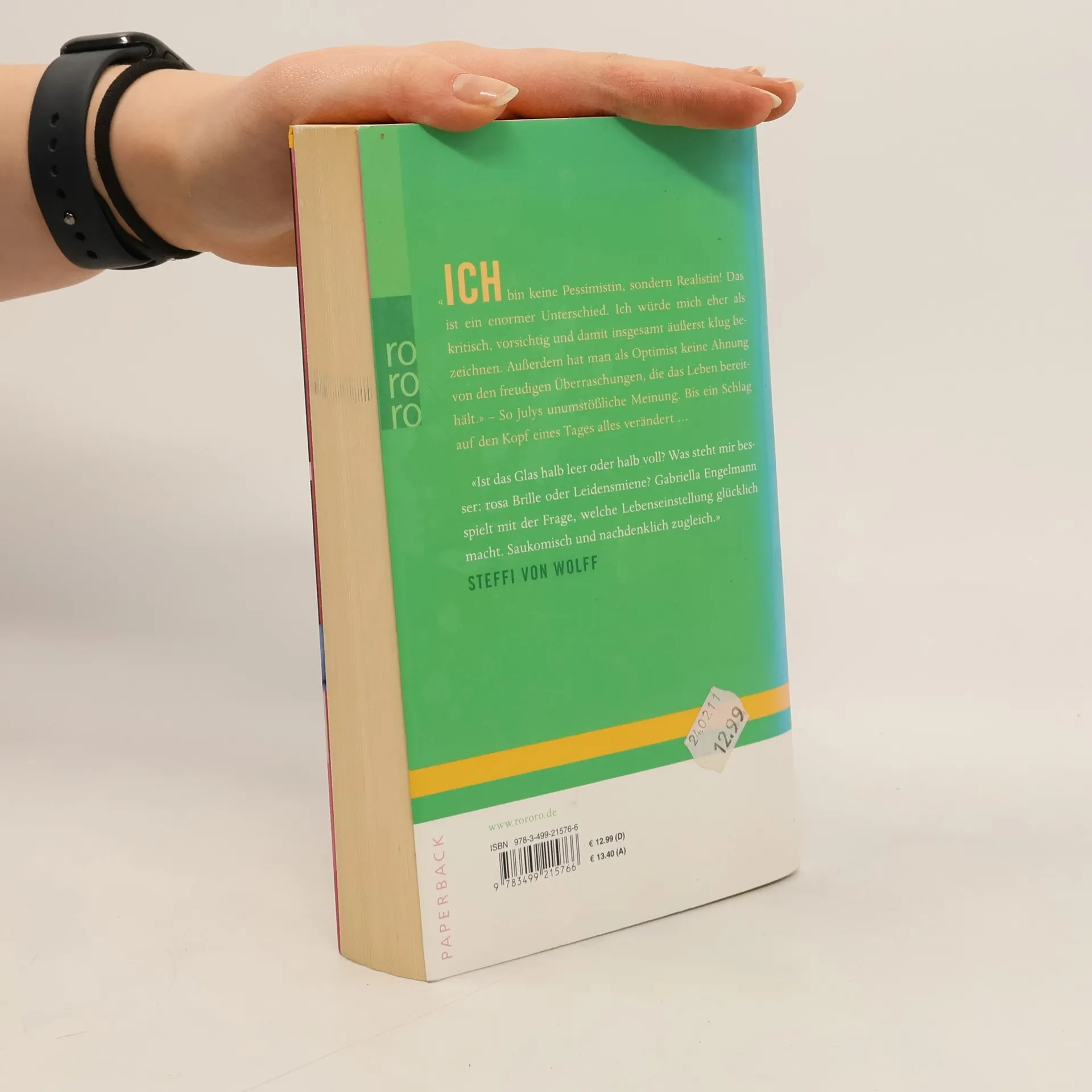 ICH bin keine Pessimistin, sondern Realistin! Das ist ein enormer Unterschied. Ich würde mich eher als kritisch, vorsichtig und damit insgesamt äußerst klug bezeichnen. Außerdem hat man als Optimist keine Ahnung von den freudigen Überraschungen, die das Leben bereithält.» – So Julys unumstößliche Meinung. Bis ein Schlag auf den Kopf eines Tages alles verändert … «Ist das Glas halb leer oder halb voll? Was steht mir besser: rosa Brille oder Leidensmiene? Gabriella Engelmann spielt mit der Frage, welche Lebenseinstellung glücklich macht. Saukomisch und nachdenklich zugleich.» STEFFI VON WOLFF