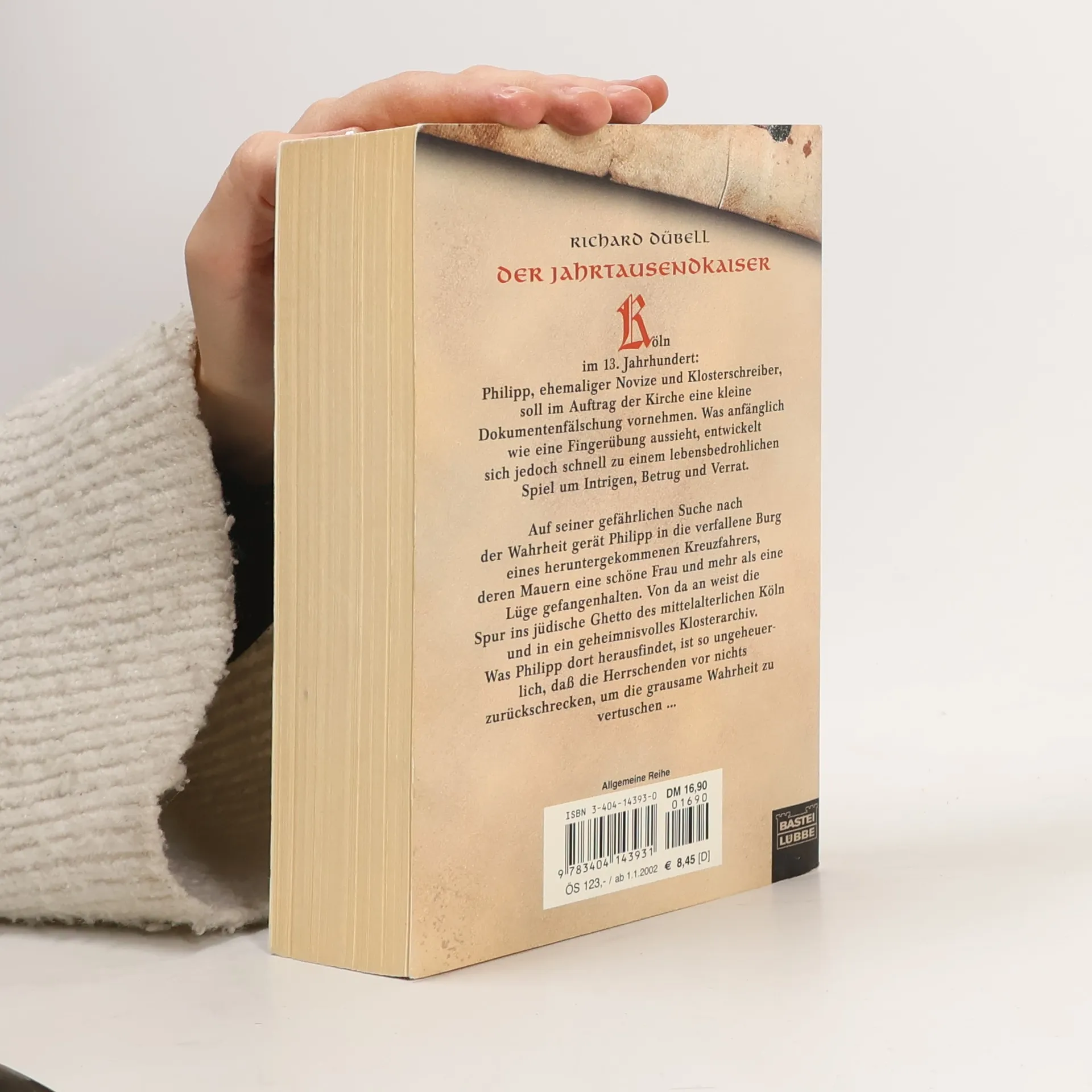 Köln im 13. Jahrhundert: Philipp, ehemaliger Novize und Klosterschreiber, soll im Auftrag der Kirche eine kleine Dokumentenfälschung vornehmen. Was anfänglich wie eine Fingerübung aussieht, entwickelt sich jedoch schnell zu einem lebensbedrohlichen Spiel um Intrigen, Betrug und Verrat. Auf seiner gefährlichen Suche nach der Wahrheit gerät Philipp in die verfallene Burg eines heruntergekommenen Kreuzfahrers, deren Mauern eine schöne Frau und mehr als eine Lüge gefangenhalten. Von da an weist die Spur ins jüdische Ghetto des mittelalterlichen Köln und in ein geheimnisvolles Klosterarchiv. Was Philipp dort herausfindet, ist so ungeheuerlich, daß die Herrschenden vor nichts zurückschrecken, um die grausame Wahrheit zu vertuschen.