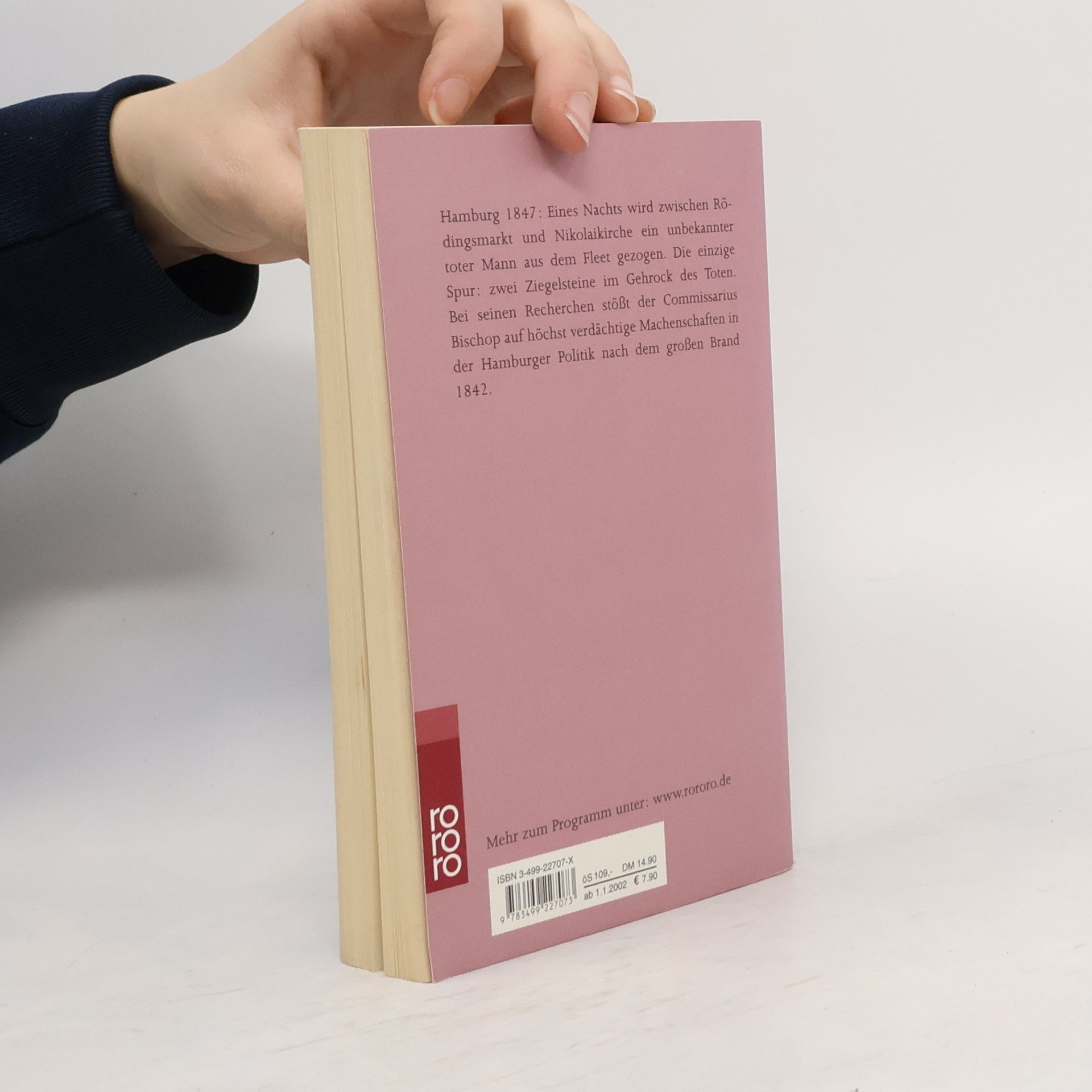 Hamburg 1847: Eines Nachts wird zwischen Rödingsmarkt und Nikolaikirche ein unbekannter toter Mann aus dem Fleet gezogen. Die einzige Spur: zwei Ziegelsteine im Gehrock des Toten. Bei seinen Recherchen stößt der Commissarius Bishop auf höchst verdächtige Machenschaften in der Hamburger Politik nach dem großen Brand 1842.