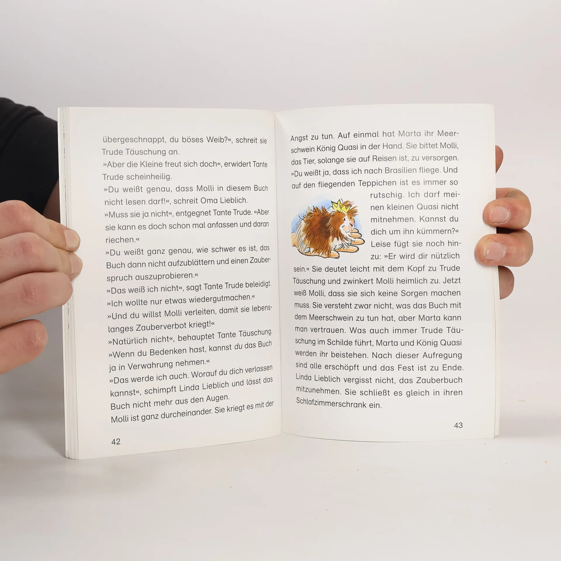 Da Molli schon alle Zaubersprüche für ihr Alter auswendig kann, benutzt sie heimlich das Große Zauberbuch für Zauberer und Zauberinnen ab 100 Jahre. Prompt wird sie erwischt und erhält ein Jahr lang Zauberverbot! An ihrem 77. Geburtstag darf Molli endlich wieder zaubern! Alle gratulieren ihr, sogar Trude Täuschung. Doch die führt wenig Zauberhaftes im Schilde...