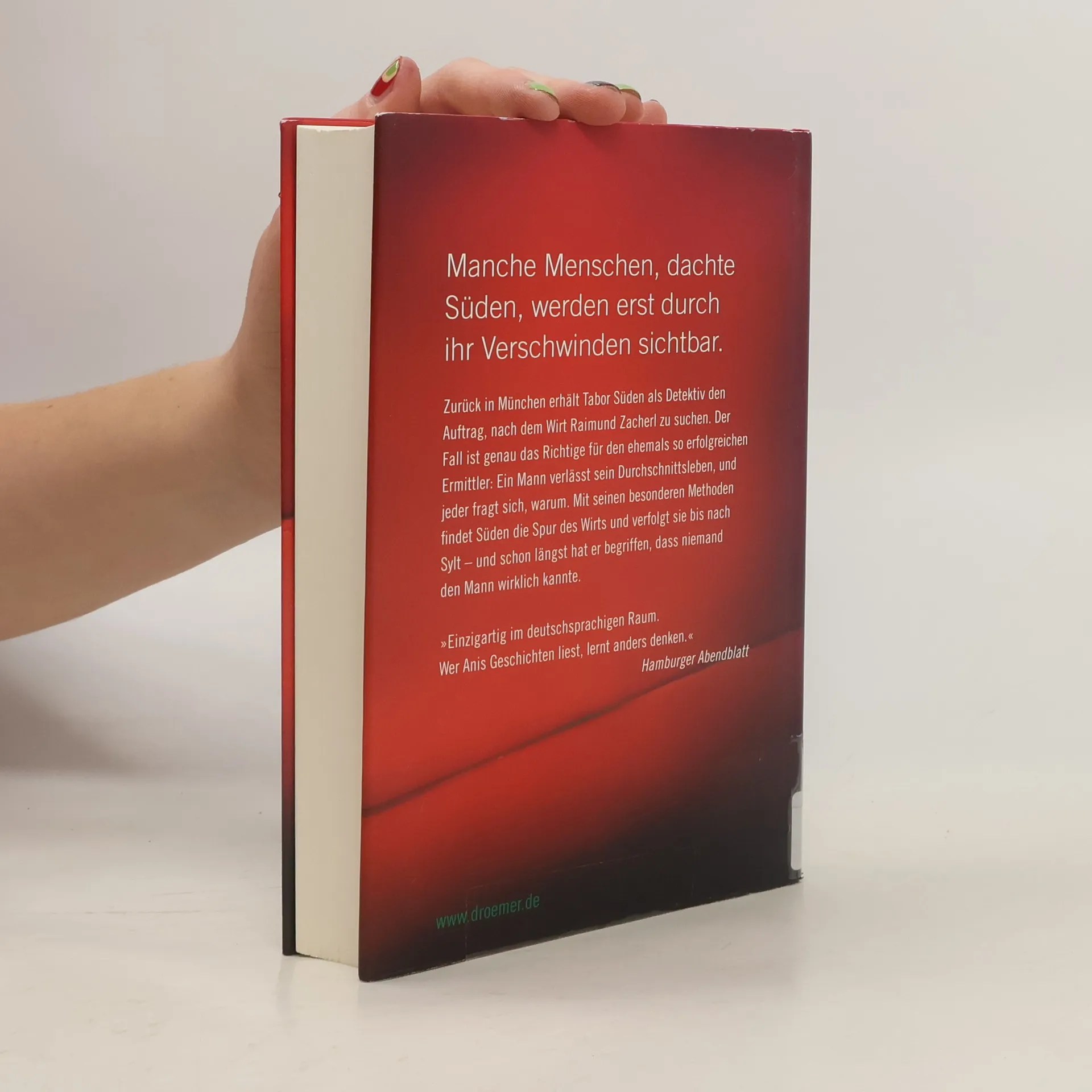 Zurück in München erhält Tabor Süden als Detektiv den Auftrag, nach dem Wirt Raimund Zacherl zu suchen. Der Fall ist genau das Richtige für den ehemals so erfolgreichen Ermittler: Ein Mann verlässt sein Durchschnittsleben, und jeder fragt sich, warum. Mit seinen besonderen Methoden fi ndet Süden die Spur des Wirts und verfolgt sie bis nach Sylt – und schon längst hat er begriffen, dass niemand den Mann wirklich kannte. Friedrich Ani erhielt für „Süden“ den „Deutschen Krimipreis 2012 - national“.