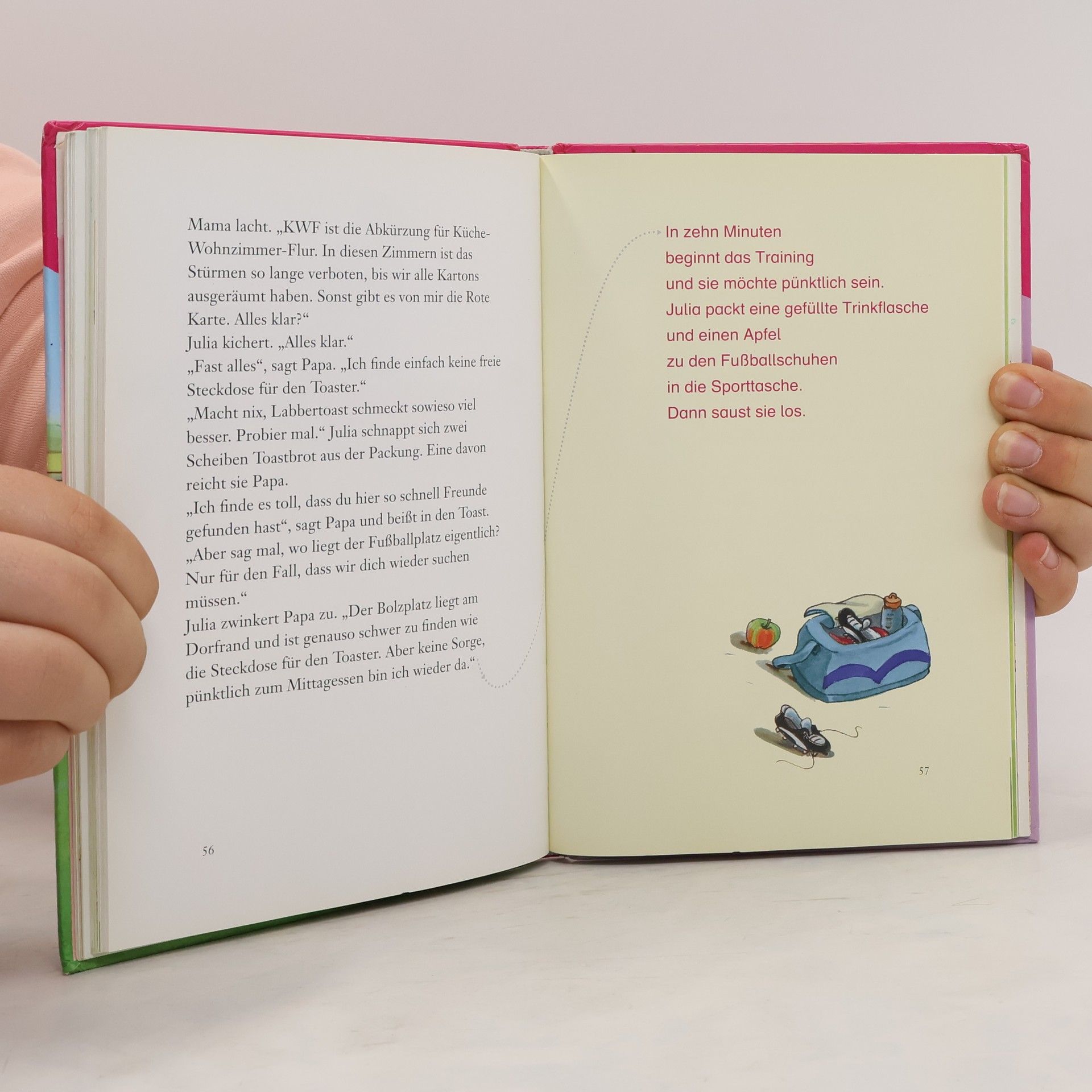 Julia liebt Fußballspielen. Als Stürmerin in ihrer Mädchenmannschaft war kein Tor vor ihr sicher. Zum Glück gibt es in ihrem neuen Wohnort wenigstens ein paar bolzende Jungs. Es macht Spaß mit denen. Aber es gibt ein Problem: Die halten Julia für einen Jungen und wollen vielleicht gar nicht mit einem Mädchen kicken. Soll Julia den Irrtum aufklären? Wie kommt sie da wieder raus?