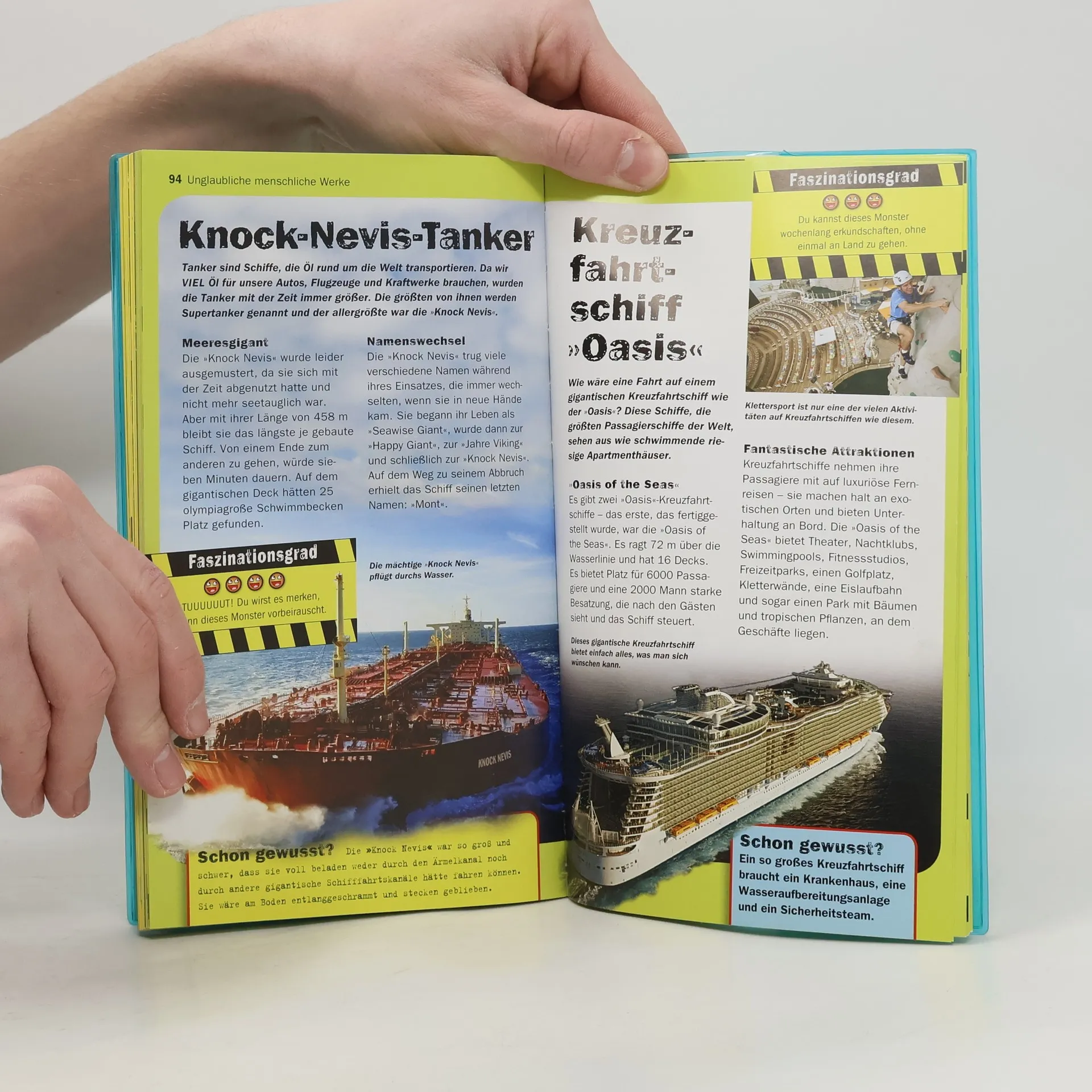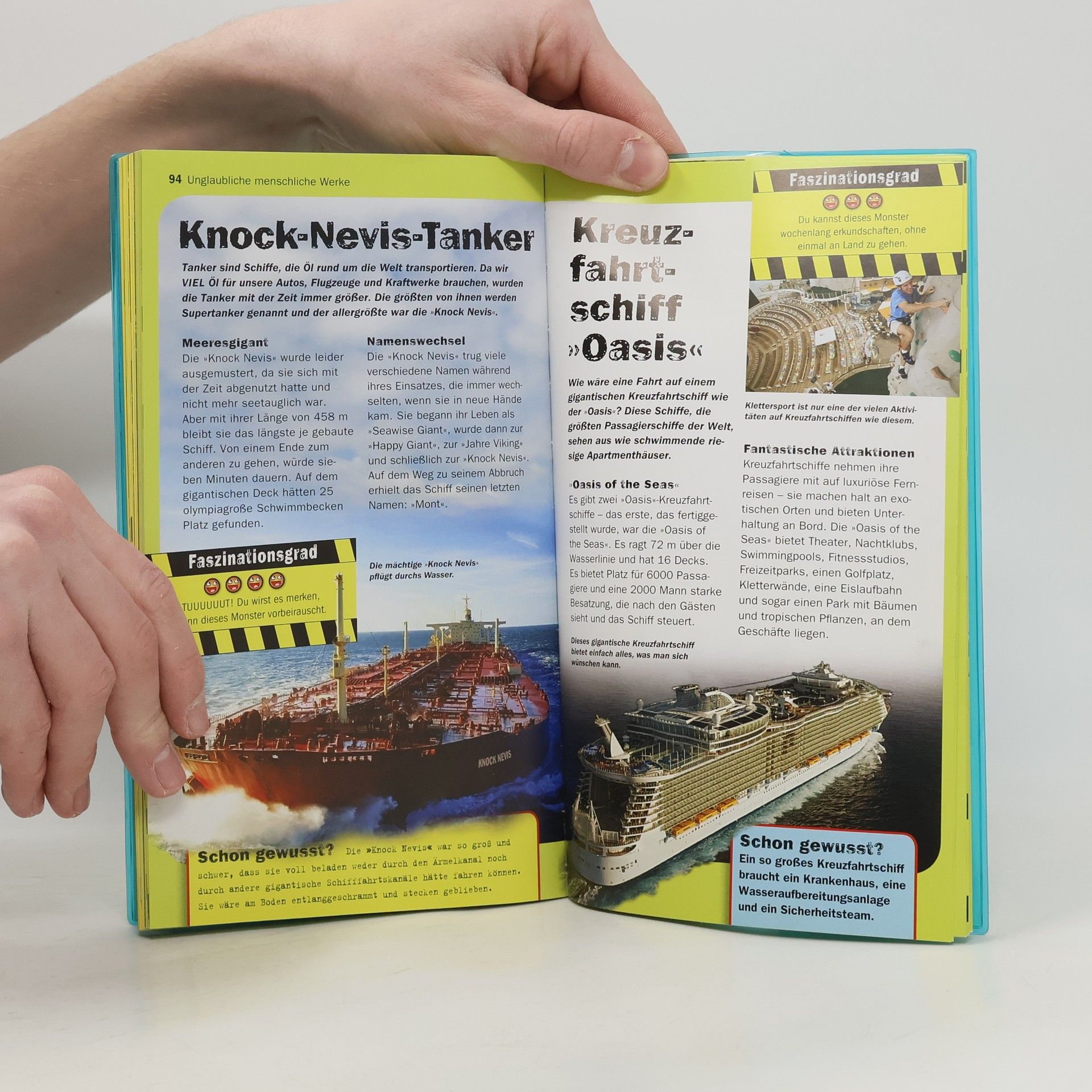 Ob im Wasser, zu Lande, in der Luft oder gar außerirdisch: Mache dich gefasst auf die 100 unglaublichsten Naturwunder und von Menschenhand geschaffenen Werke. Von den größten Kreaturen der Meere geht es über explodierende Vulkane und himmelhohe Wasserfälle bis zu den irrsinnigsten Maschinen; inklusive einer Fahrt in der rasantesten Achterbahn der Welt. Das ist cool, krass, komplett umwerfend – informative Texte und sensationelle Fotos bringen selbst »abgebrühte« Leser zum Staunen!