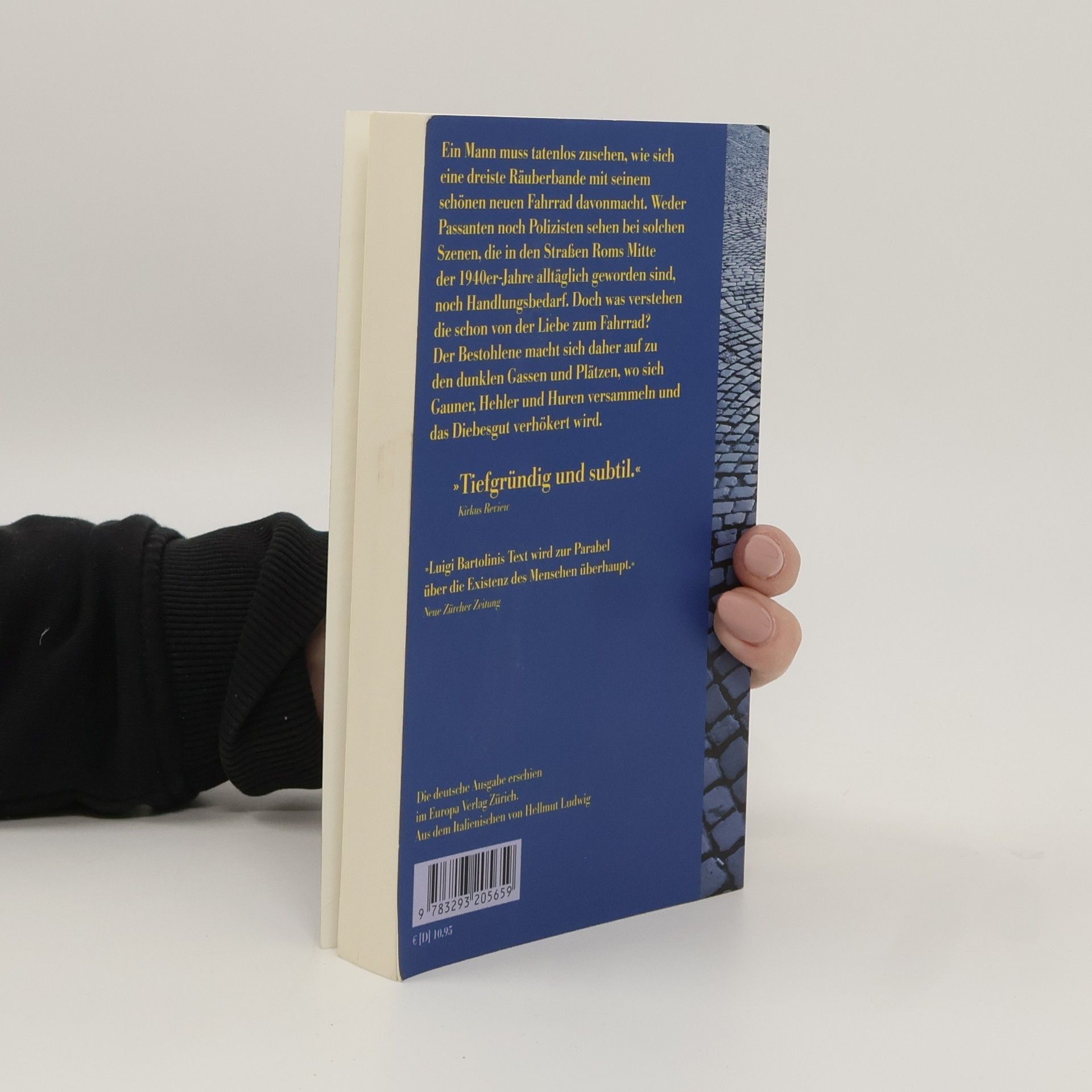 Ein Mann sieht durch das Schaufensterglas eines Geschäfts, wie sich eine dreiste Räuberbande mit seinem schönen neuen Fahrrad davonmacht. Unmöglich, sie noch einzuholen, und weder Passanten noch Polizisten sehen bei solchen Szenen, die in den Straßen Roms Mitte der Vierzigerjahre alltäglich geworden sind, noch Handlungsbedarf. Doch was verstehen die schon von der Liebe zum Fahrrad und von der Freiheit, die es verkörpert? Der Bestohlene gibt sich nicht geschlagen und macht sich selbst auf zu den dunklen Gassen und Plätzen, wo sich Gauner, Hehler und Huren versammeln und das Diebesgut verhökert wird. Melancholisch und humorvoll erzählt Bartolini von der abenteuerlichen Suche und verdichtet sie zu einer Parabel der menschlichen Existenz.