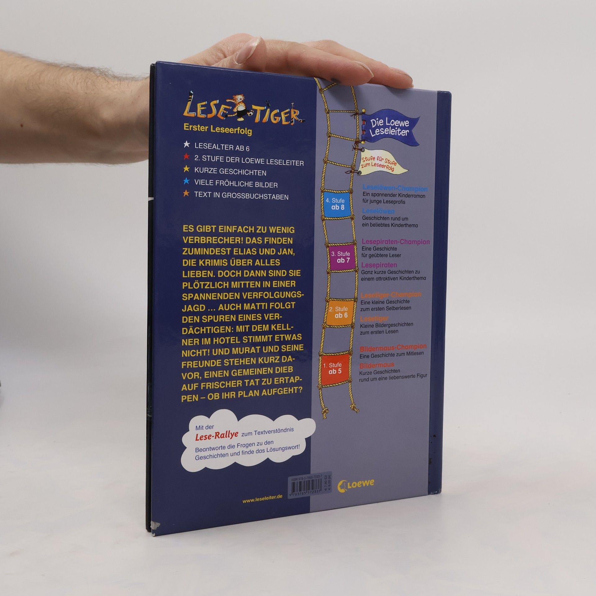 Es gibt einfach zu wenig Verbrecher! Das finden zumindest Elias und Jan, die Krimis über alles lieben. Doch dann sind sie plötzlich mitten in einer spannenden Verfolgungsjagd. Auch Matti folgt den Spuren eines Verdächtigen: Mit dem Kellner im Hotel stimmt etwas nicht! Und Murat und seine Freunde stehen kurz davor, einen gemeinen Dieb auf frischer Tat zu ertappen – ob ihr Plan funktioniert? Mehr Infos rund um die Leseleiter unter: www. leseleiter. de