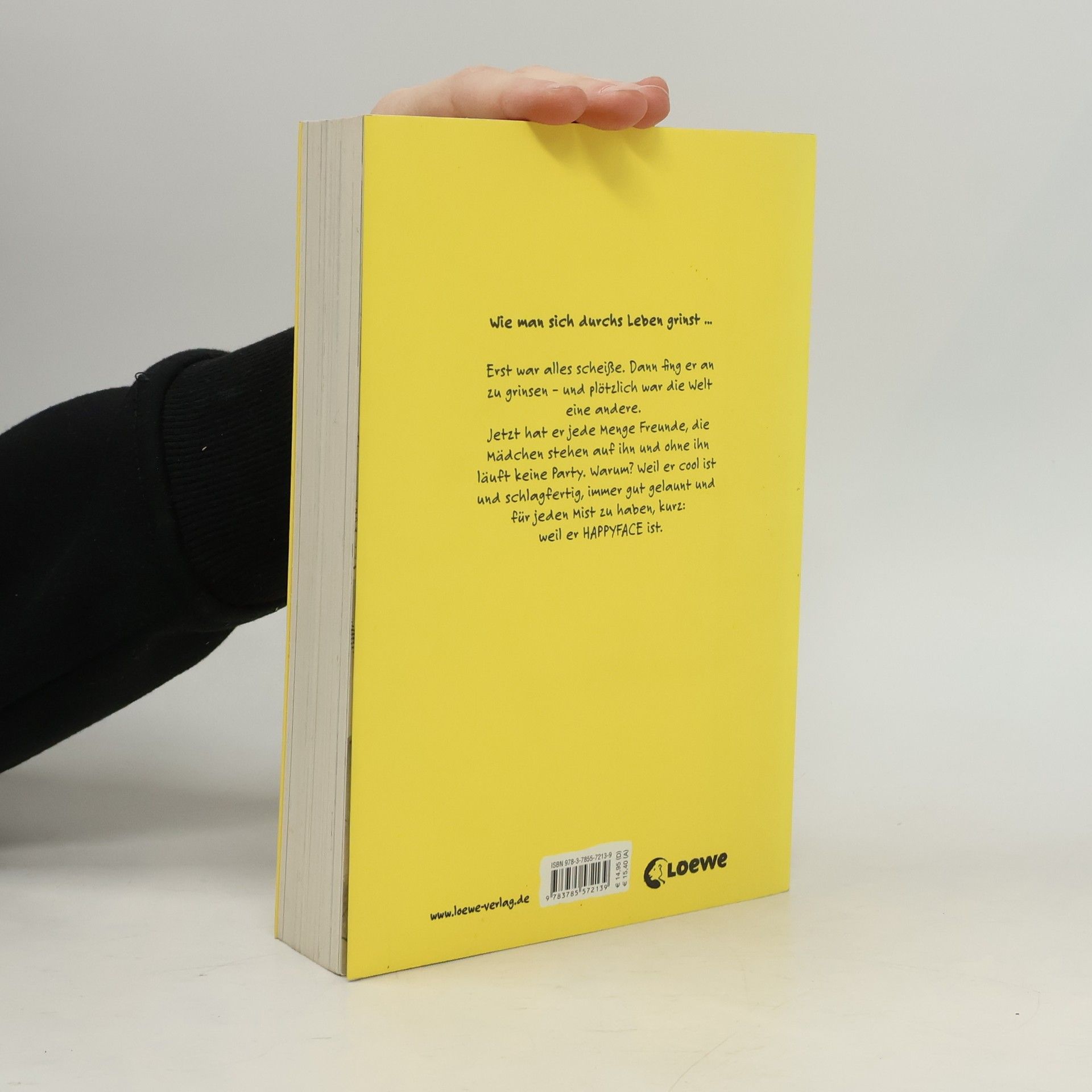 Dies sind die Aufzeichnungen und Erkenntnisse eines Teenagers , der sich eines Tages neu erfindet. Er setzt ein Grinsen auf, lächelt sich durch die ganze Kacke und wird zu – Happyface ! Wie man sich durchs Leben grinst … Erst war alles Scheiße. Dann ist er umgezogen, hat angefangen zu grinsen – und plötzlich ist die Welt eine andere. Er hat jede Menge Freunde, die Mädchen stehen auf ihn und ohne ihn läuft keine Party. Warum? Weil er cool ist und schlagfertig, immer gut gelaunt und für jeden Mist zu haben, kurz – weil er HAPPYFACE ist ... Stephen Emonds Jugendroman für Jungs ist ein originelles erzählendes Experiment und besteht aus Notizen und cartoonartigen Zeichnungen eines Teenagers, der den Wahnsinn des Erwachsenwerdens durchlebt. Cool, sarkastisch und sensibel – eine Wahnsinnsmischung!
