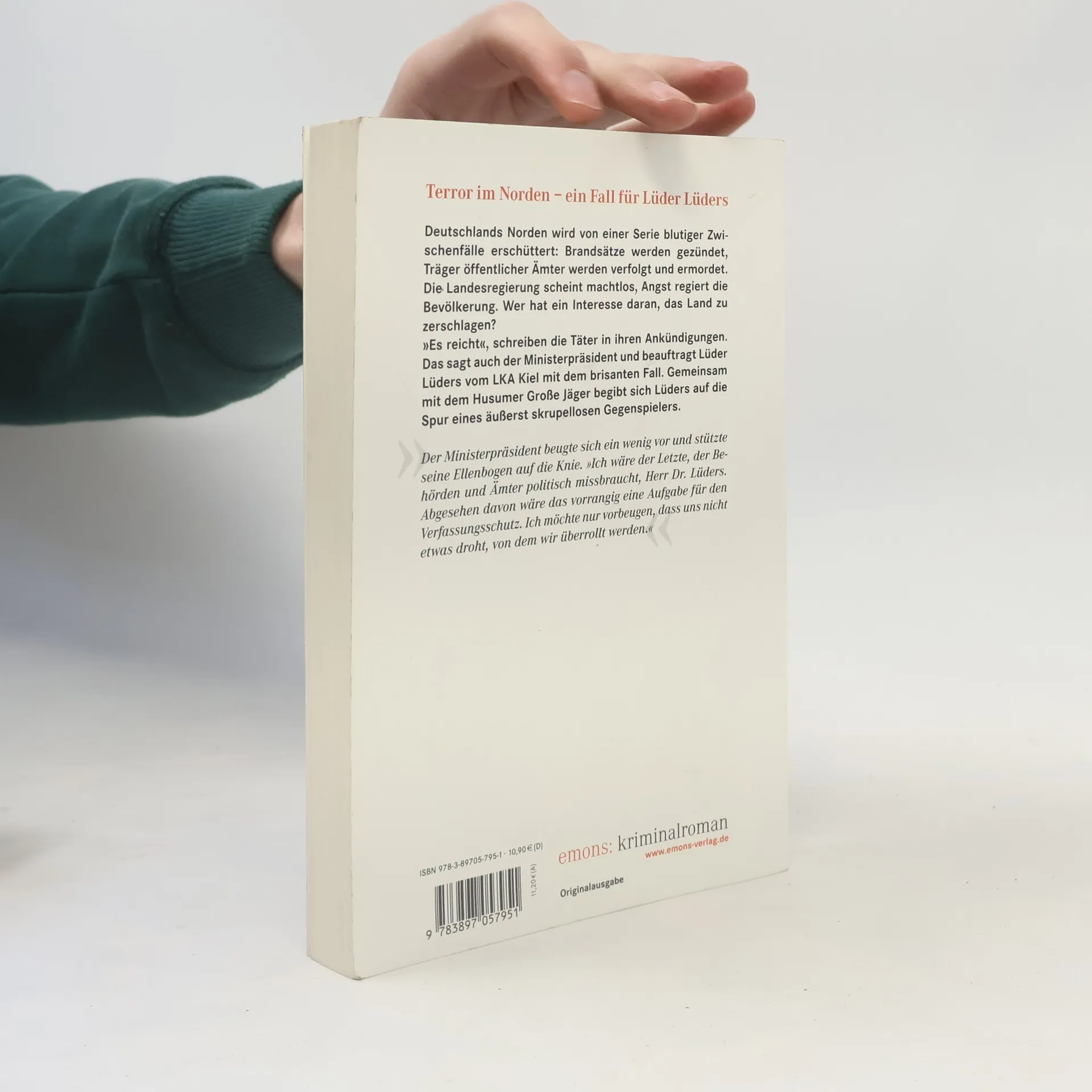Deutschlands Norden wird von einer Serie blutiger Zwischenfälle erschüttert: Brandsätze werden gezündet, Träger öffentlicher Ämter werden verfolgt und ermordet. Die Landesregierung scheint machtlos, Angst regiert die Bevölkerung. Wer hat ein Interesse daran, das Land zu zerschlagen? 'Es reicht', schreiben die Täter in ihren Ankündigungen. Das sagt auch der Ministerpräsident und beauftragt Lüder Lüders vom LKA Kiel mit dem brisanten Fall. Gemeinsam mit dem Husumer Große Jäger begibt sich Lüders auf die Spur eines äußerst skrupellosen Gegenspielers.