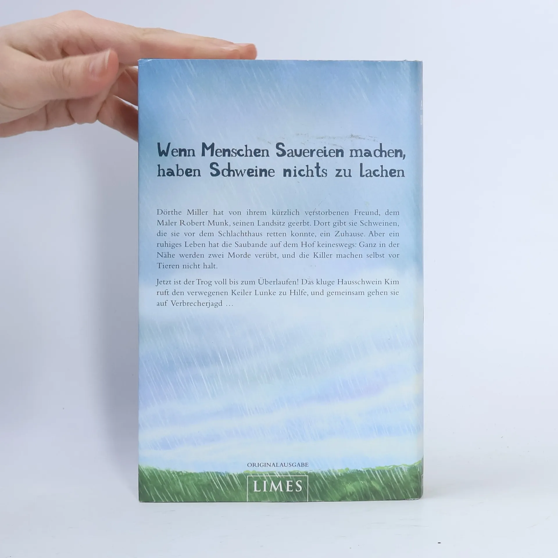 Wenn Menschen Sauereien machen, haben Schweine nichts zu lachen! - Ein neuer Fall für die Saubande Hausschwein Kim und Keiler Lunke sind zurück – und geraten in einen Kriminalfall, in dem es einem Mitschwein an den Kragen geht. Ein Drogenkurier wird ermordet, ein Fotograf stürzt mit einem Heißluftballon ab, und ein Killer bringt ein Schwein um. Jetzt werden die Schweine selbst aktiv! Dörthe Miller gibt den Schweinen, die sie vor dem Schlachthaus retten konnte, ein Zuhause. Aber ein ruhiges Leben haben die Tiere auf dem Hof keineswegs: Ganz in der Nähe werden zwei Morde verübt, und die Killer machen selbst vor Tieren nicht halt. Eine saumäßige Erpressung kostet einen Schwan das Leben, und dann muss auch noch eines der Schweine dran glauben. Jetzt ist der Trog voll bis zum Überlaufen: Das kluge Hausschwein Kim ruft Keiler Lunke zu Hilfe, und gemeinsam legen sie einer absoluten Charaktersau das Handwerk.