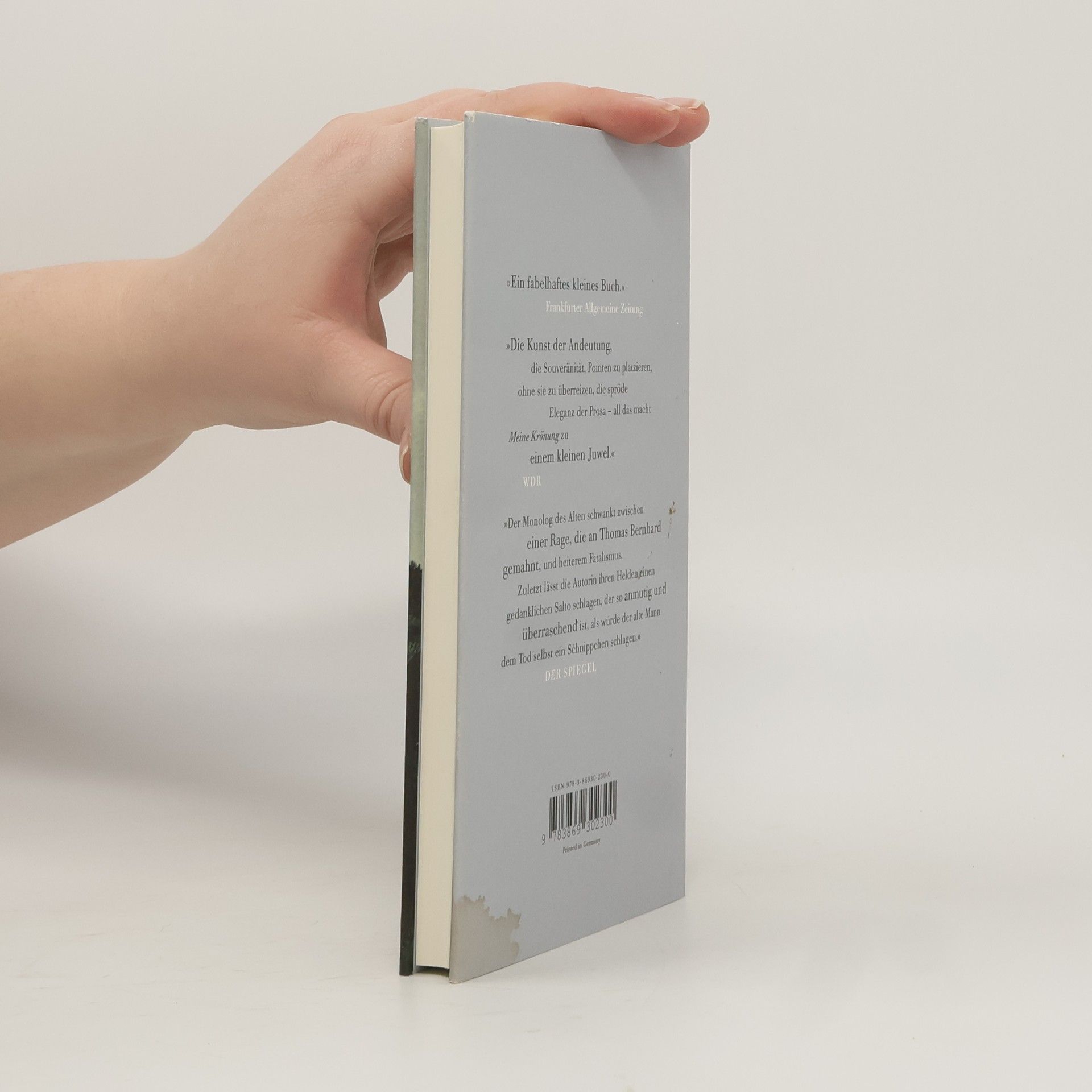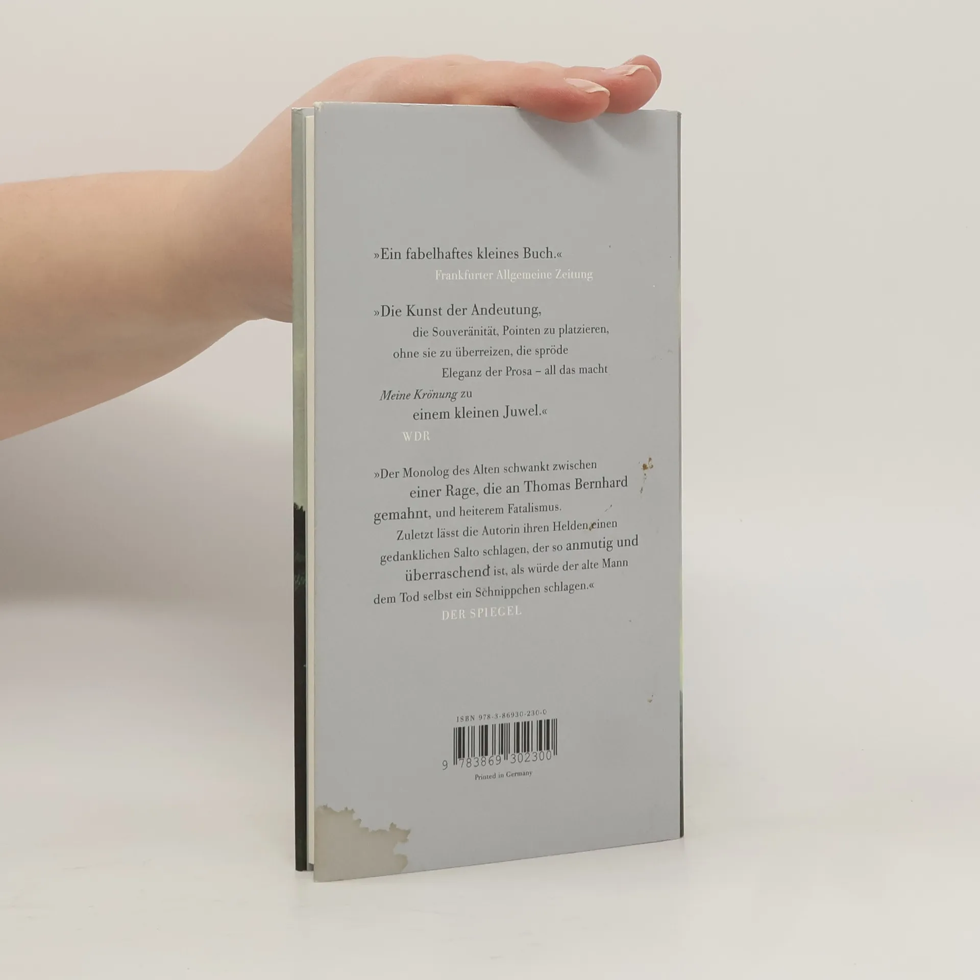 Völlig unerwartet soll ein Forscher im Ruhestand für seine frühere Arbeit eine bedeutende Auszeichnung erhalten. Ihm selbst ist nicht klar, was er da entdeckt haben soll, doch die Nachricht sorgt für Furore: Journalisten suchen ihn heim und stören die behagliche Unordnung im Wohnzimmer und im Innersten des 89-Jährigen. Doch da ist Madame Ambrunaz, seine Haushälterin und ein Bollwerk gegen die Zumutungen der Welt. Sie geleitet den etwas verstockten Wissenschaftler mit sanfter Beharrlichkeit und großartigen Einfällen durch die Tage bis zu seiner Ehrung. Sie kocht ihm Linsen und entführt ihn an die See, während er sich in Gedanken darüber verliert, aus welch merkwürdigen Begegnungen und absurden Anekdoten am Ende das wird, was man sein Leben nennt. Und das hält nun mal bis zum Schluss Überraschungen bereit – auch für einen alten Entdecker. Véronique Bizot hat mehrere Novellen publiziert. Mit Meine Krönung (frz. Mon couronnement) erscheint erstmals ein Buch von ihr auf Deutsch. Für dieses Romandebüt erhielt Bizot 2010 den Grand Prix du Roman der französischen Schriftstellervereinigung und den Autorinnenpreis Prix Lilas.