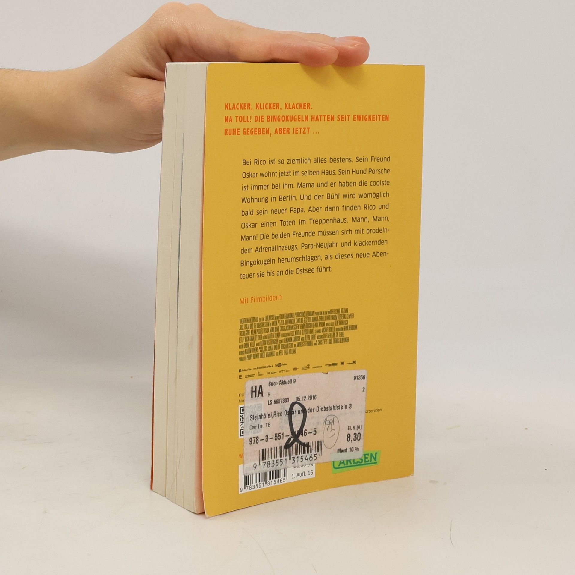 Bei Rico ist so ziemlich alles bestens. Sein Freund Oskar wohnt jetzt im selben Haus. Sein Hund Porsche ist immer bei ihm. Mama und er haben die coolste Wohnung in Berlin. Und der Bühl wird womöglich bald sein neuer Papa. Aber dann finden Rico und Oskar einen Toten im Treppenhaus. Mann, Mann, Mann! Die beiden Freunde müssen sich mit brodelndem Adrenalinzeugs, Para-Neujahr und klackernden Bingokugeln herumschlagen, als dieses neue Abenteuer sie bis an die Ostsee führt. *** Band 3 der wunderbaren Rico-und-Oskar-Serie vom preisgekrönten Erfolgsautor Andreas Steinhöfel! Alle Bücher über Rico und Oskar: Rico, Oskar und der Diebstahlstein Rico, Oskar und das Herzgebreche Rico, Oskar und die Tieferschatten Rico, Oskar und das Vomhimmelhoch Kindercomics: Rico & Oskar – Fische aus Silber Rico & Oskar – Die Regenhütte