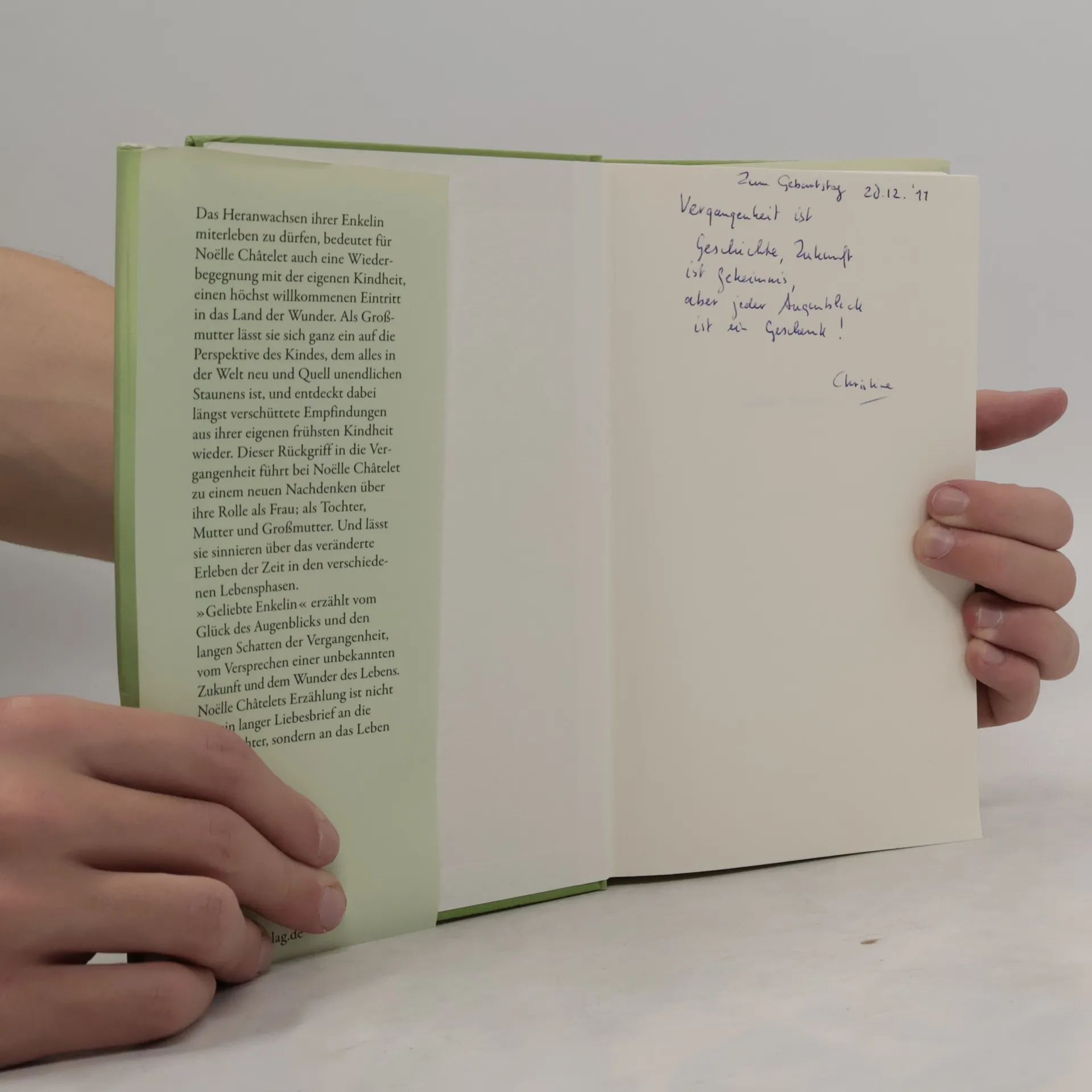 Über das Glück, Großmutter zu sein Die Geburt ihres ersten Enkelkinds katapultiert Noëlle Châtelet, die Autorin der Bestseller »Die Klatschmohnfrau« und »Die Dame in Blau«, in eine Welt ungekannter Freuden und Gefühle. Voller Staunen erzählt sie davon, wie sie dank ihrer Enkelin das Leben noch einmal mit ganz neuen Augen zu betrachten lernt. Das Heranwachsen ihrer Enkelin miterleben zu dürfen, bedeutet für Noëlle Châtelet auch eine Wiederbegegnung mit der eigenen Kindheit, einen höchst willkommenen Eintritt in das Land der Wunder. Als Großmutter lässt sie sich ganz ein auf die Perspektive des Kindes, dem alles in der Welt neu und Quell unendlichen Staunens ist, und entdeckt dabei längst verschüttete Empfindungen aus ihrer eigenen frühsten Kindheit wieder. Dieser Rückgriff in die Vergangenheit führt bei Noëlle Châtelet zu einem neuen Nachdenken über ihre Rolle als Frau – als Tochter, Mutter und Großmutter. Und lässt sie sinnieren über das veränderte Erleben der Zeit in den verschiedenen Lebensphasen. »Geliebte Enkelin!« erzählt vom Glück des Augenblicks und den langen Schatten der Vergangenheit, vom Versprechen einer unbekannten Zukunft und dem Wunder des Lebens. Noëlle Châtelets Erzählung ist nicht nur ein langer Liebesbrief an die Enkeltochter, sondern an das Leben überhaupt.