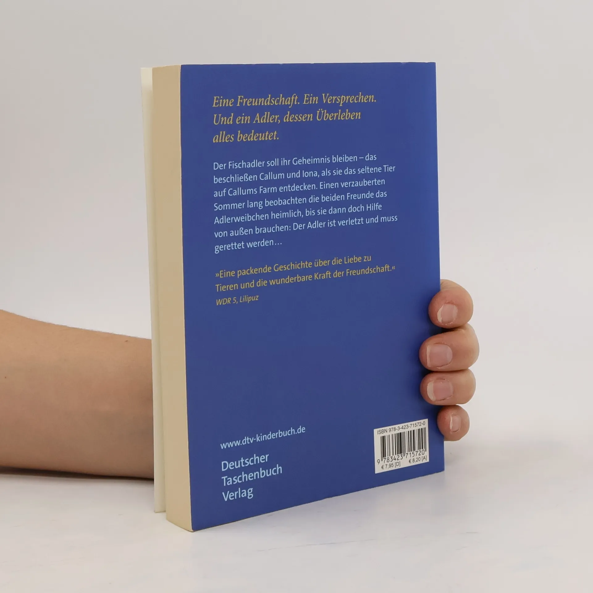 Ein Adler. Ein Versprechen. Zwei Leben. Der Fischadler soll ihr Geheimnis bleiben. Das beschließen Callum und Iona, als sie das seltene Tier entdecken. Aber dann verletzt sich der Adler und sie müssen Hilfe holen. Er wird gerettet und mit einem Sender versehen, sodass die Kinder seinen Flug in Richtung Afrika über Google Earth mitverfolgen können. Doch dann verliert sich plötzlich die Spur des Adlers in Gambia, und Callum setzt per E-Mail alle Hebel in Bewegung... Kinderbuchpreis der Jury der Jungen Leser 2013