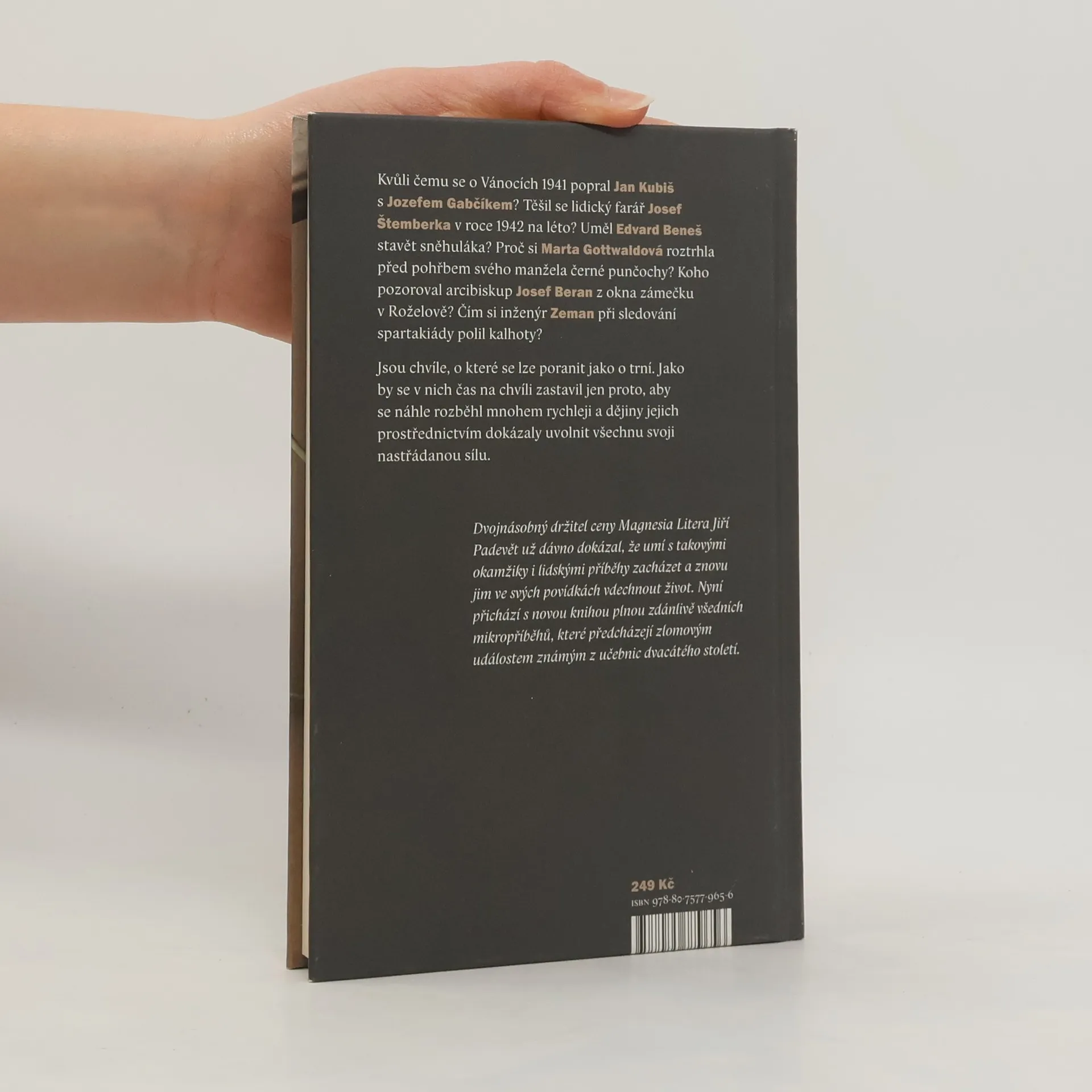 Okamžiky na první pohled banální, ale už na ten druhý osudové Jsou chvíle, o které se lze poranit jako o trní. Jako by se v nich čas na chvíli zastavil jen proto, aby se náhle rozběhl mnohem rychleji a dějiny jejich prostřednictvím dokázaly uvolnit všechnu svoji nastřádanou sílu. Hodnotit je a detailně zkoumat je však možné až s dostatečným odstupem. Někteří lidé se v nich ocitnou víceméně náhodou, jiní je sami vyhledávají. A někteří jejich síle podlehnou a jiní vytrvají. A my? Jak bychom se zachovali, kdybychom netušili, jak to všechno jednou skončí? Dvojnásobný držitel ceny Magnesia Litera Jiří Padevět už dávno dokázal, že umí s takovými okamžiky i lidskými příběhy zacházet a znovu jim ve svých črtách vdechnout život. Nyní přichází s novou knihou plnou zdánlivě všedních mikropříběhů, které předcházejí zlomovým událostem známým z učebnic dvacátého století. Tentokrát je popisuje především prostřednictvím originálních črt ze života obyčejných lidí, kterým dějiny daly velká jména.