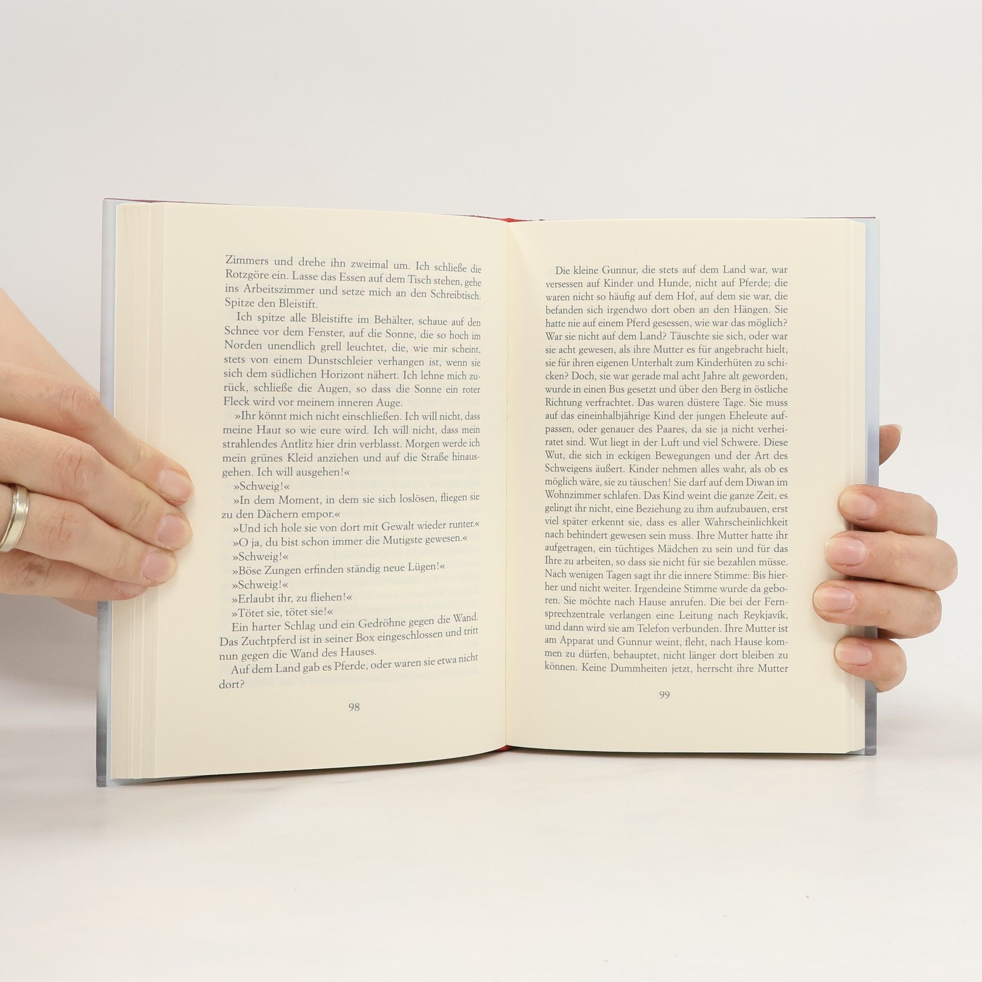 Reisen Sie mit: In das Land der Erinnerung oder in das Reich der Phantasie In der Nacht waren Einbrecher gekommen und hatten sie beraubt. Hatten in ihren Sachen gewühlt, ihren Schmuck entwendet. Hatten sie wahrscheinlich im Schlaf beobachtet. Die Vorstellung, eine weitere Nacht in diesem Haus zu verbringen, war ihr unerträglich. Deshalb wollte sie fort, in ihr Sommerhaus. Mit der 14jährigen Tochter einer Bekannten fährt sie aufs Land. Doch wie verbringen eine Frau in den Fünfzigern und ein Mädchen im Teenageralter, das an Handy, PC und Fernsehen gewöhnt ist, drei Tage in völliger Abgeschiedenheit miteinander? Kristín Marja Baldursdóttir hat einen wunderbaren atmosphärischen Roman geschrieben, der vor großem landschaftlichem Panorama seine Leser mit auf eine Reise nimmt: eine Reise in die Erinnerung und in das Land der Phantasie. ----------- Þegar Gunnur vaknar hefur heimili hennar verið rænt. Í ofboði ákveður hún að flýja austur í sumarbústað en þangað fer með henni unglingsstúlka sem hún þekkir afar lítið. Þetta verður óvenjuleg helgi með skemmtilegum en líka sársaukafullum gönguferðum um hús minninganna.