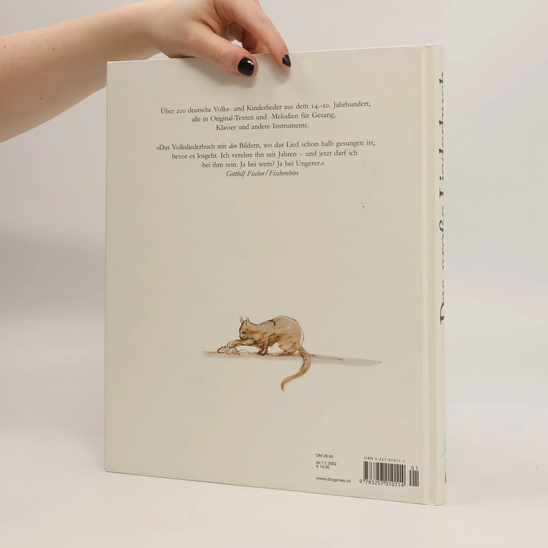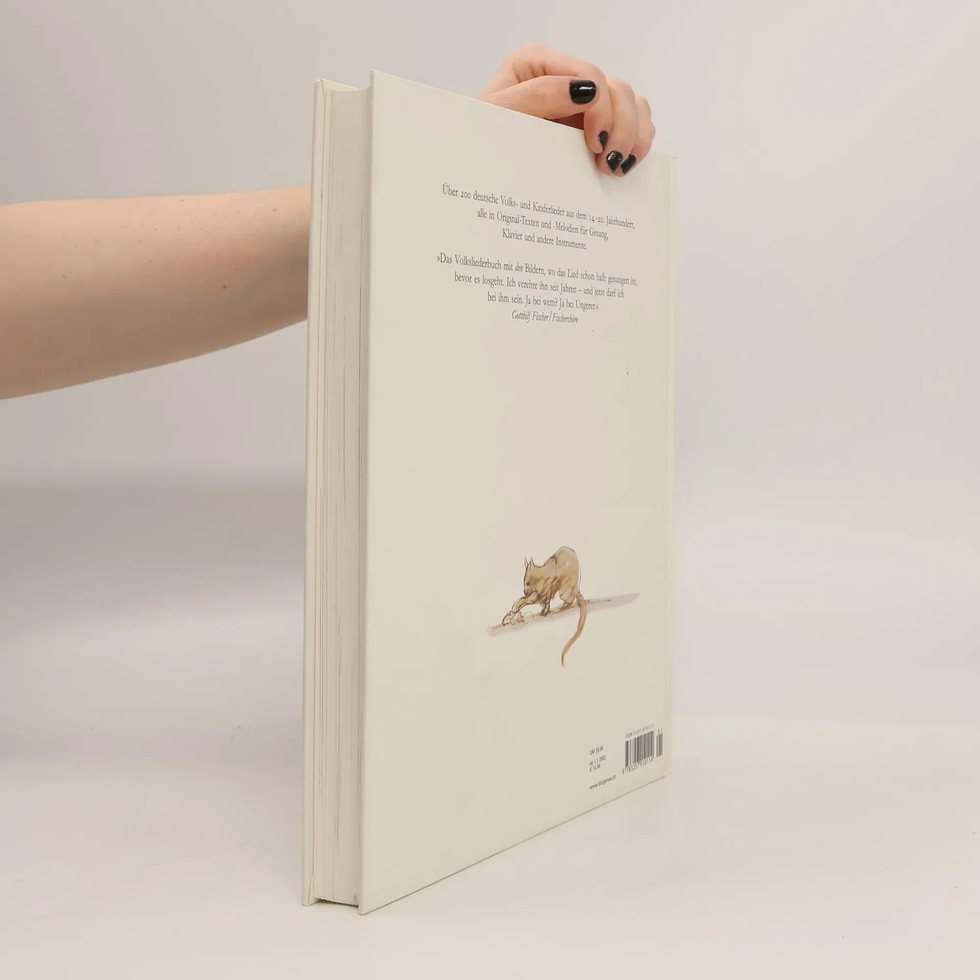 Über 200 deutsche Volks- und Kinderlieder aus dem 14. bis 20. Jahrhundert, gesammelt von Anne Diekmann unter Mitarbeit von Willi Gohl. Alle im Originaltext und in der Originalmelodie. Illustriert mit über 150 Bildern von Tomi Ungerer.