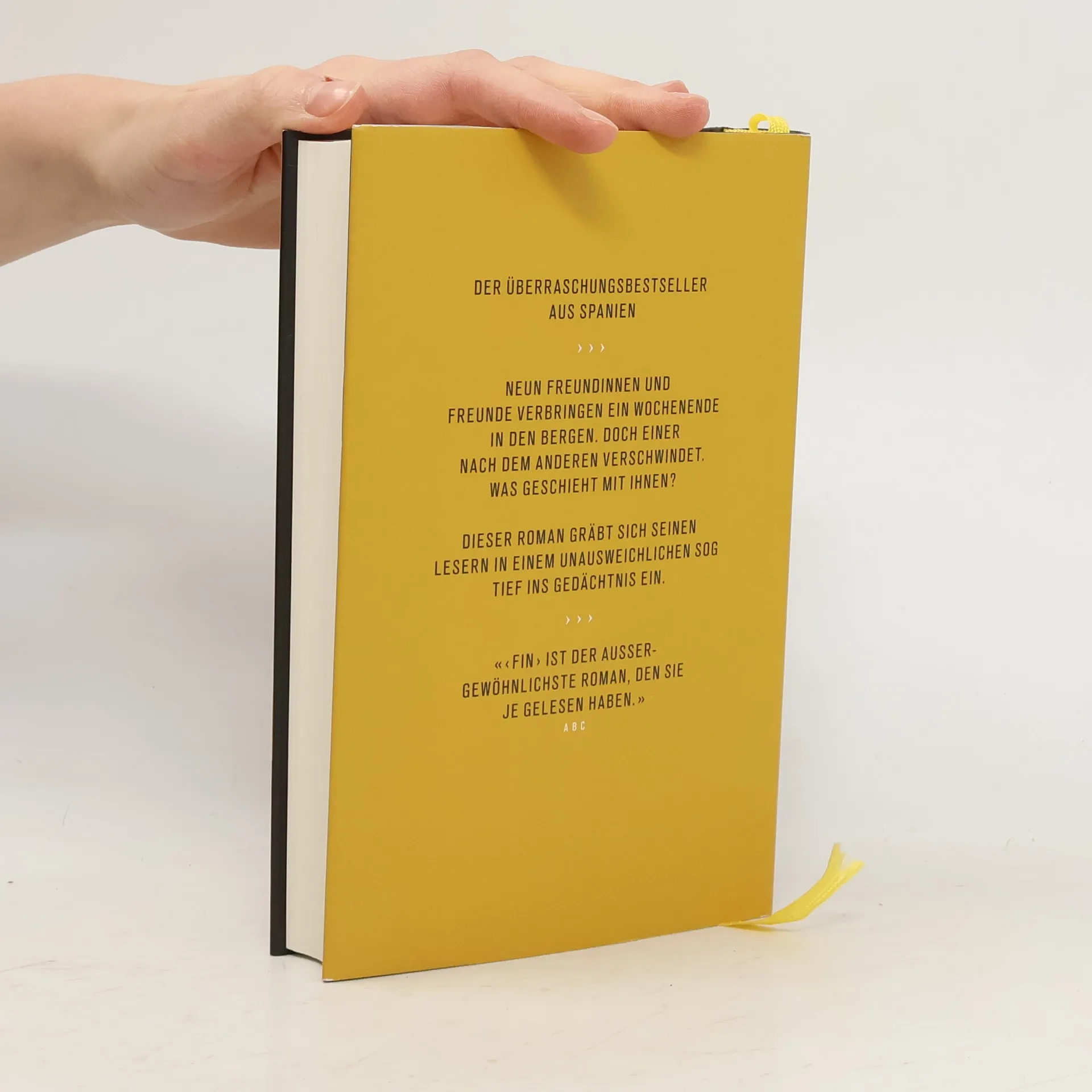 Neun Freundinnen und Freunde treffen sich für ein Wochenende in einer Berghütte wieder, viele Jahre nachdem sie als Clique auseinandergegangen sind. Um Mitternacht fällt der Strom aus, die Handys funktionieren nicht mehr, die Autos starten nicht. In dem blanken Sternenhimmel ist kein einziges Flugzeug zu entdecken. Eine unheimliche Stille liegt über ihnen. Die Freunde bemühen sich, ihre Angst mit Scherzen zu überspielen, doch es will ihnen nicht so recht gelingen. In der Nacht tun sie kein Auge zu. Was ist passiert? Keiner von ihnen findet eine Erklärung. Plötzlich entdecken sie, dass einer fehlt. Rafa ist spurlos und von allen unbemerkt verschwunden. Am Morgen brechen sie zu Fuß auf. Der Weg in die Stadt führt durch ein schattiges Tal. Sie gehen hintereinander, und als sie sich zu Cova umdrehen wollen, ist sie nicht mehr da. Wer wird der Nächste sein? Unerbittlich verschwindet einer nach dem andern. Sie lösen sich lautlos in der Landschaft auf, sie verlieren sich im Nichts. Wenn es keine Erklärung mehr gibt, dann ist das das Ende. «Wer sich von Literatur in neue Welten entführen lassen will, muss dieses Buch lesen.» El País «Monteagudos Blick auf die Welt steht in der Tradition von Cormac McCarthy. Er geht bis ans Ende und lässt uns atemlos zurück.» El Mundo «‹FIN› ist der aussergewöhnlichste Roman, den Sie je gelesen haben.» ABC