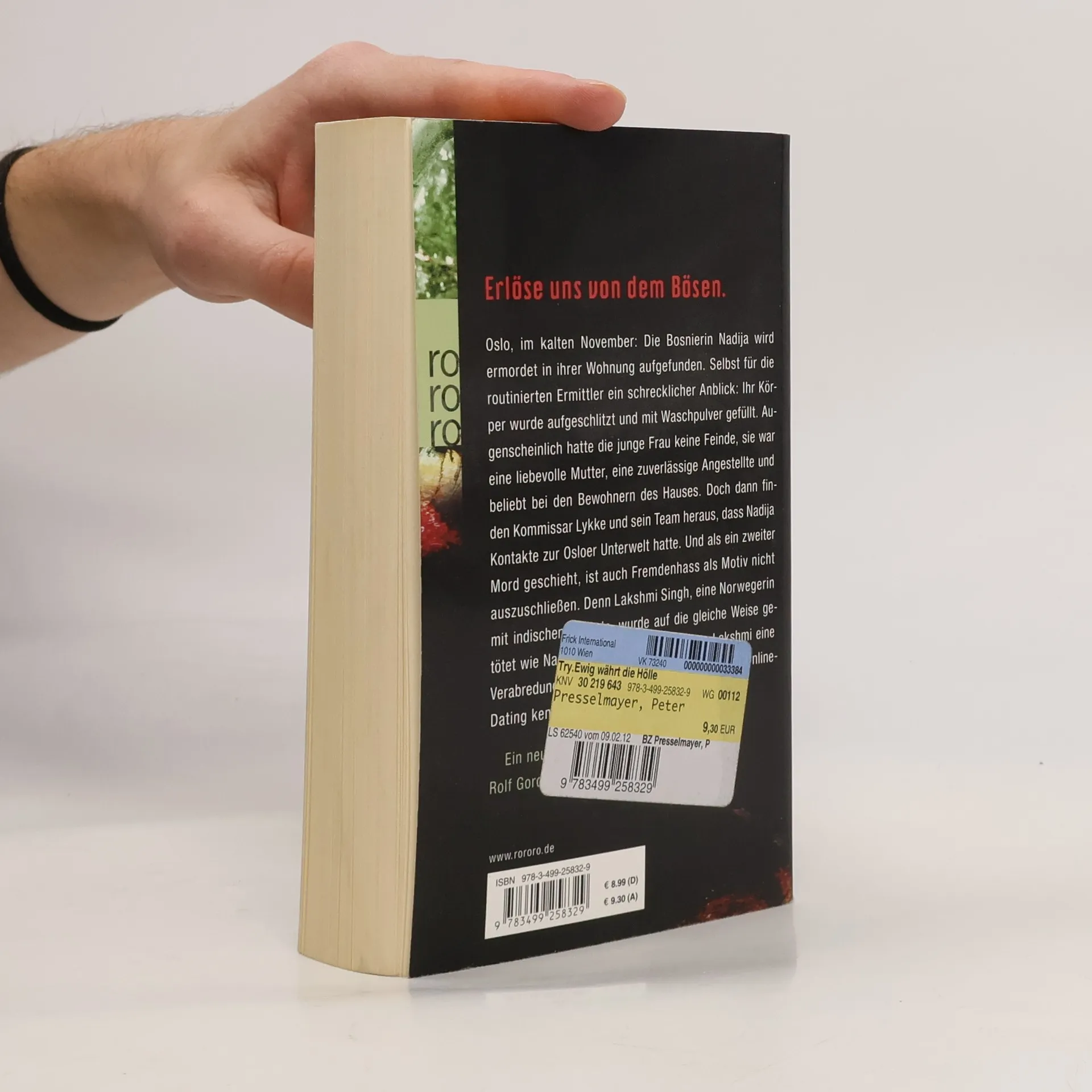 Erlöse uns von dem Bösen. Oslo, im kalten November: Die Bosnierin Nadija wird ermordet in ihrer Wohnung aufgefunden. Selbst für die routinierten Ermittler ein schrecklicher Anblick: Ihr Körper wurde aufgeschlitzt und mit Waschpulver gefüllt. Augenscheinlich hatte die junge Frau keine Feinde, sie war eine liebevolle Mutter, eine zuverlässige Angestellte und beliebt bei den Bewohnern des Hauses. Doch dann finden Kommissar Lykke und sein Team heraus, dass Nadija Kontakte zur Osloer Unterwelt hatte. Und als ein zweiter Mord geschieht, ist auch Fremdenhass als Motiv nicht auszuschließen. Denn Lakshmi Singh, eine Norwegerin mit indischen Wurzeln, wurde auf die gleiche Weise getötet wie Nadija. Kurz vor ihrem Tod hatte Lakshmi eine Verabredung mit einem Mann, den sie in einem Internet-Datingportal kennenlernte. Ein neuer Fall für den Osloer Kommissar Rolf Gordon Lykke und sein Team.