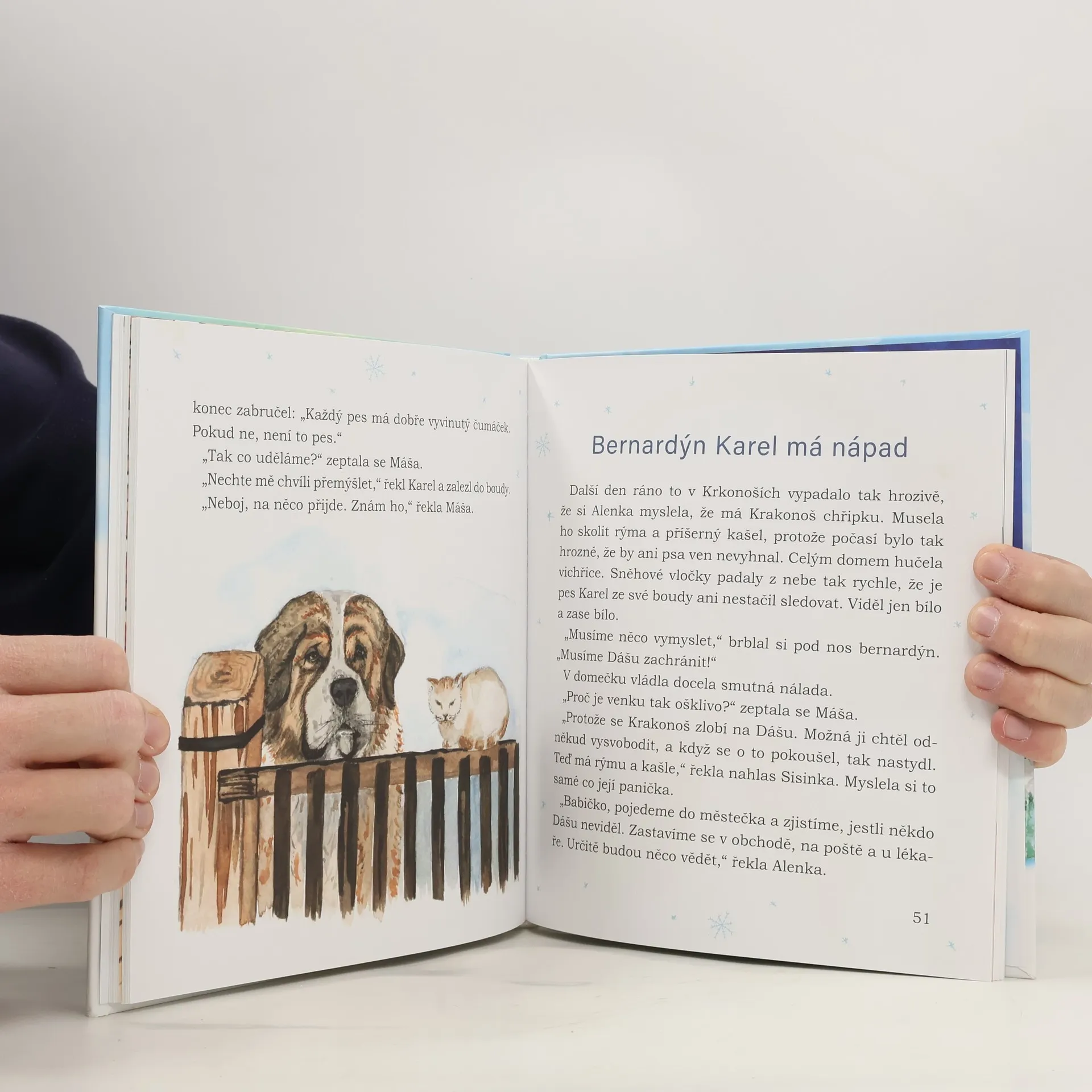 Malá Alenka odjíždí se svým malým pejskem Sisinkou na celou zimu do nejvyšších českých hor Krkonoš ke své babičce. V malé roubené chaloupce na samotě bydlí už dvě namyšlené kočky Máša a Dáša a velký pes Karel, který musí všechny hlídat. Jenže Dáša moc zlobí a bez pomoci ochránce hor Krakonoše a ostatních zvířátek, kdo ví, jak by neposlušná kočička dopadla. Tato pohádka má šťastný konec
