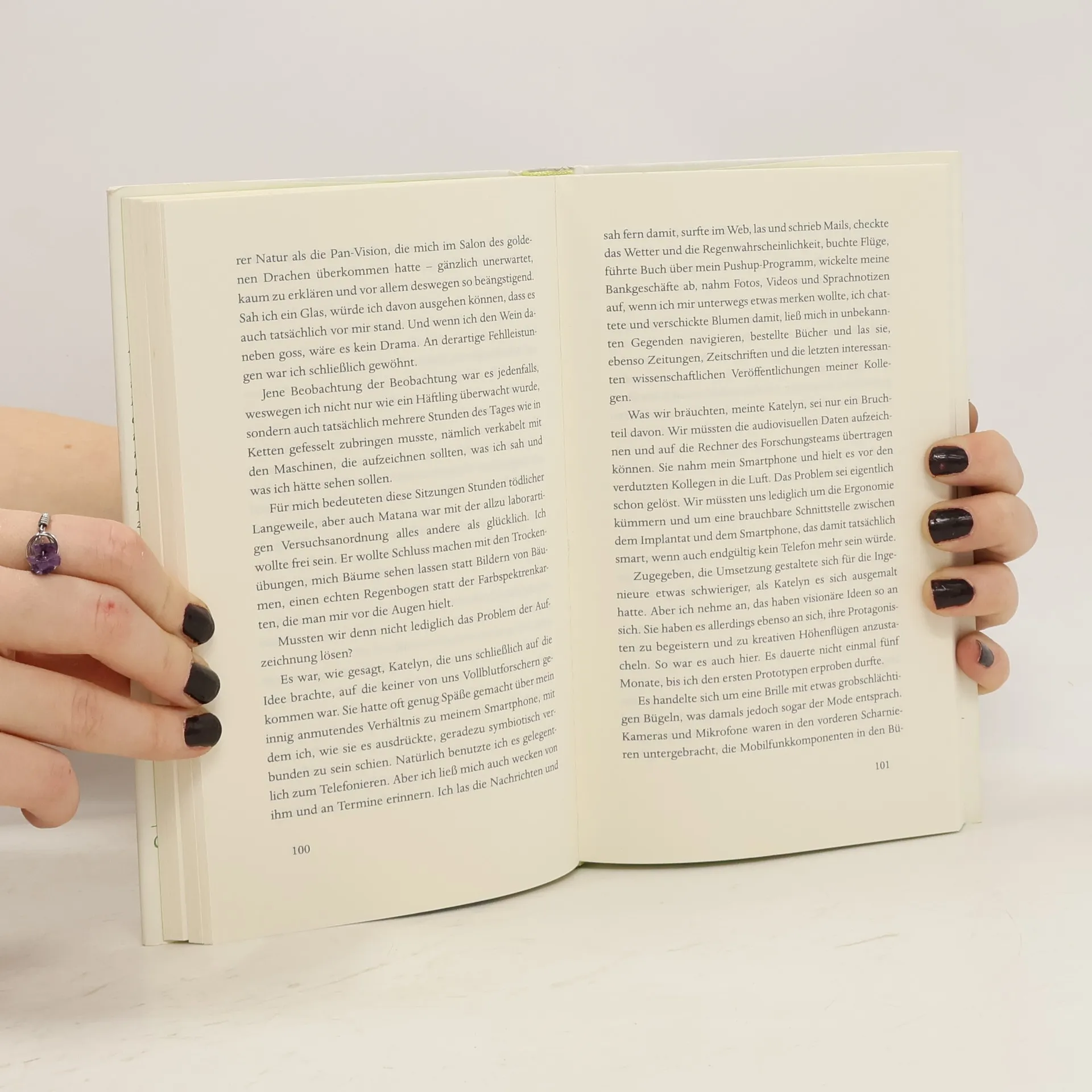 Als Ed Rosen in der Morgendämmerung erwacht und mit den Zehen wackelt, steht eines fest: der Huf, der am Fußende aus seinem Bett ragt, ist auf keinen Fall seiner. Aber da. Wie soll er sich das erklären? Rosen, ein Software-Experte, war Mitentwickler und erster Träger des UniCom, eines Kommunikationsmittels, das als Implantat weit mehr kann als ein Smartphone – es protokolliert die Sinneswahrnehmungen seines Besitzers und macht das, was wir Realität nennen, in „Replays“ unendlich wiederhol- und veränderbar: vor allem eine erotische Verlockung. Und es macht den Träger total kontrollierbar. Rosens Chef Matana und seine Firma treten einen weltweiten Siegeszug mit diesem Gerät an und nur ein paar ewiggestrige Störenfriede mahnen. Bis sich unerwartet Widerstand gegen das digitale Arkadien regt, der vielleicht auch den Huf erklärt?