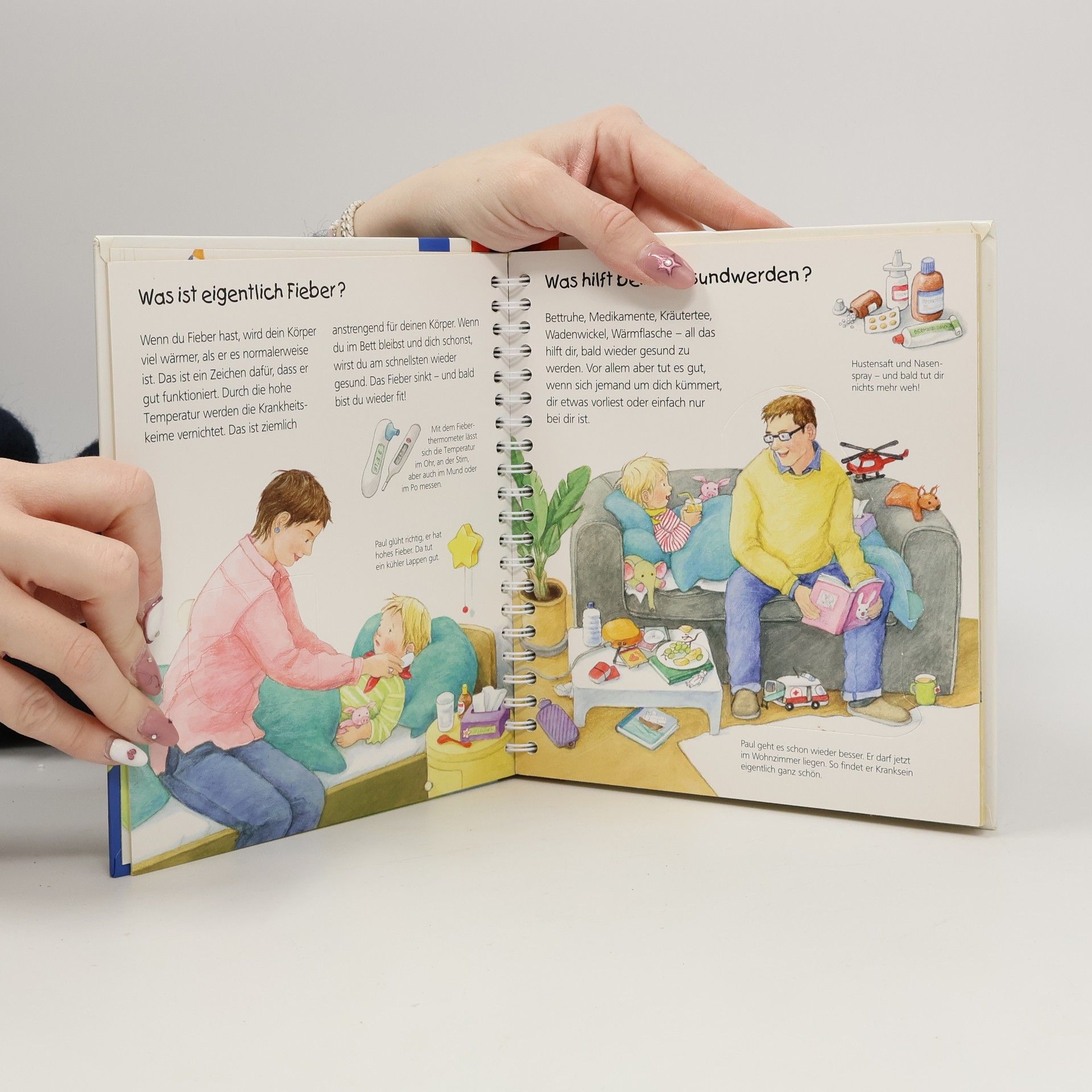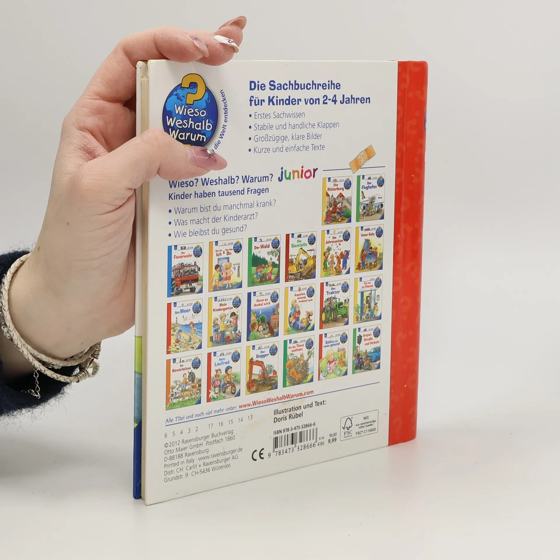 Halsschmerzen, kein Appetit, Lustlosigkeit - so fühlt es sich an, wenn man krank wird. Gerade die Kleinsten wissen aber meist nicht, was Kranksein eigentlich bedeutet und was man tun kann, um schnell wieder gesund zu werden. Dieses Buch schafft Abhilfe: Einfühlsame Bilder und lustige Klappen erklären Kindern ab 2 Jahren, warum wir überhaupt krank werden, wie ein Besuch beim Kinder- und beim Zahnarzt abläuft und was bei den U-Untersuchungen passiert. Wieso? Weshalb? Warum? junior Die Sachbuchreihe für Kinder von 2-4 Jahren Jeden Tag entdecken Kinder etwas Neues – und haben viele Fragen. Wann kommt die Feuerwehr? Was machen die Tiere im Winter? Warum muss ich Zähne putzen? Die beliebte Sachbuchreihe Wieso? Weshalb? Warum? junior beantwortet die Fragen der Kinder auf Augenhöhe. Sie beleuchtet unterschiedlichste Themen aus ihrer Alltags- und Interessenswelt altersgerecht und mit viel Liebe zum Detail. Die Reihe ist speziell auf kleine Hände und die Bedürfnisse der Kleinsten angepasst. Klare und liebevolle Bilder, kurze Sachtexte sowie handliche Klappen, die Bewegungen veranschaulichen und überraschende und lustige Einblicke gewähren, ermöglichen Kindern, sich ihre Themen selbst zu erschließen. Der Spaß am eigenhändigen Entdecken, die liebevolle Umsetzung und die hochwertige Ausstattung garantieren langanhaltende Freude an jedem Buch.