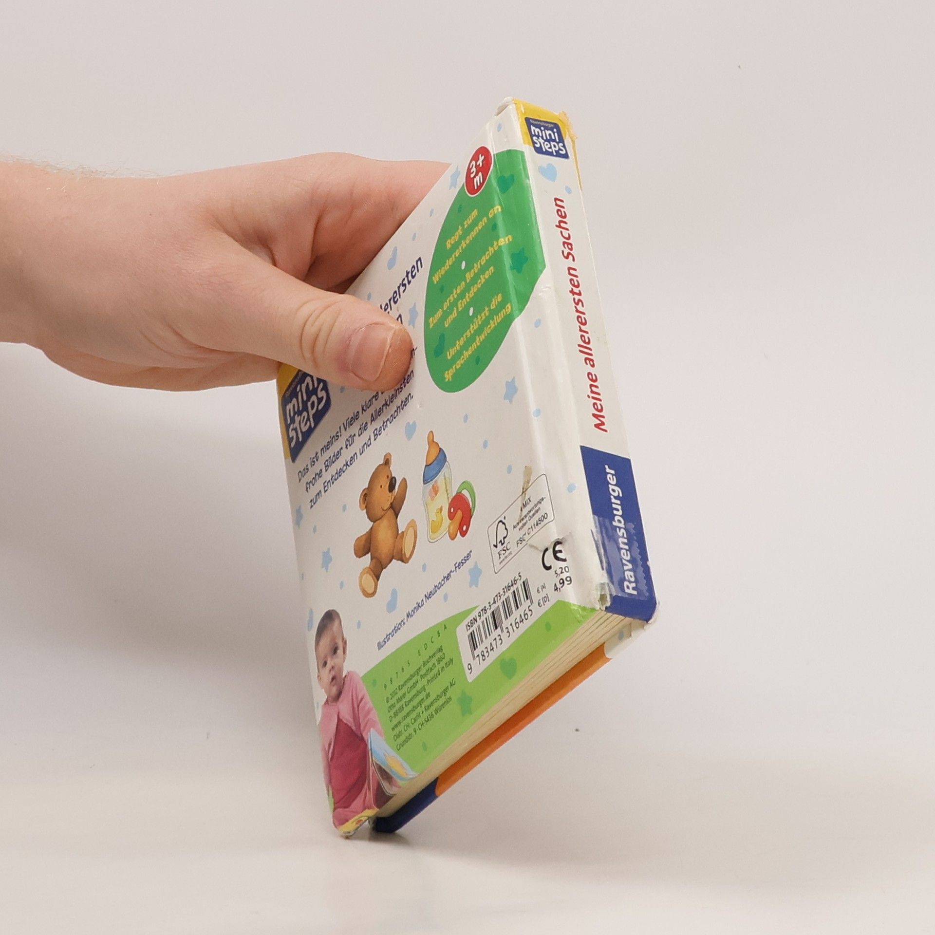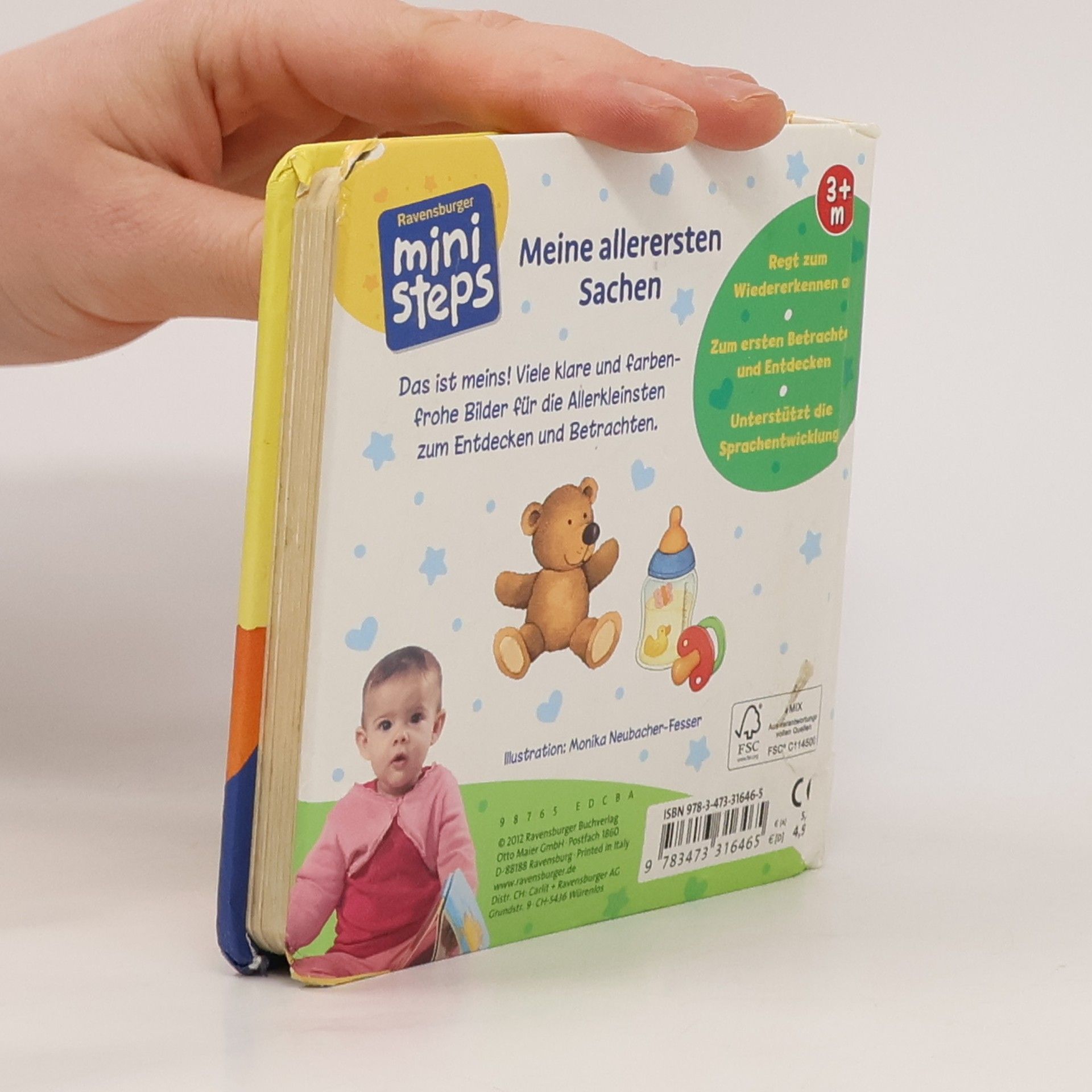 In diesem ersten Bilderbuch helfen einfache Bilder und klare Farben Babys ab 6 Monaten beim Erkennen und Benennen bekannter Motive. Das kleine handliche Format ist ideal für kleine Kinderhände und für unterwegs, denn es passt in Wickeltasche, Rucksack, Handtasche oder Kinderwagen. Dank des wattierten Umschlags kann das Buch abgewischt werden, wenn die Kleinen es mit allen Sinnen entdecken. Vertrauen schenken. Das Leben entdecken. Babys und Kleinkinder wollen mit allen Sinnen die Welt entdecken. ministeps begleitet die Kleinen auf ihren ersten Schritten ins Leben. Die vielfältigen ministeps Bücher, Spiele und Spielsachen bieten für jedes Kind die optimalen Sinnesanreize. Sie fördern das Erkennen von Farben, Formen und Bildern, sie laden zum (Be-) Greifen ein und ermutigen zum Krabbeln und Sprechen. Alle ministeps Produkte sind von höchster Ravensburger Qualität. Und das spüren nicht nur die Kleinen. Auch die Großen haben die Sicherheit, den Kindern immer ideale Anreize zu bieten.