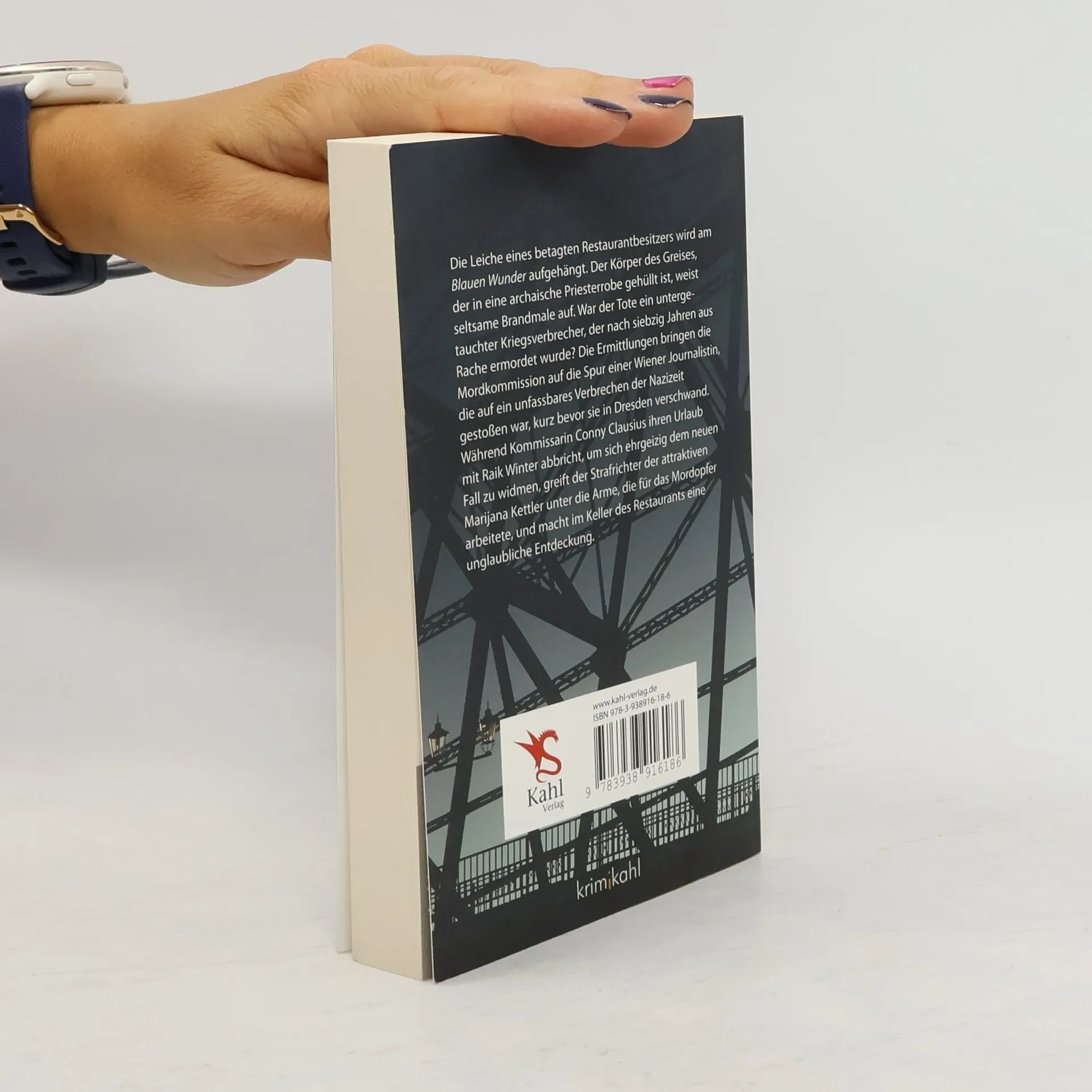 Die Leiche eines betagten Restaurantbesitzers wird am Blauen Wunder aufgehängt. Der Körper des Greises, der in eine archaische Priesterrobe gehüllt ist, weist seltsame Brandmale auf. War der Tote ein untergetauchter Kriegsverbrecher, der nach siebzig Jahren aus Rache ermordet wurde? Die Ermittlungen bringen die Mordkommission auf die Spur einer Wiener Journalistin, die auf ein unfassbares Verbrechen der Nazizeit gestoßen war, kurz bevor sie in Dresden verschwand. Während Kommissarin Conny Clausius ihren Urlaub mit Raik Winter abbricht, um sich ehrgeizig dem neuen Fall zu widmen, greift der Strafrichter der attraktiven Marijana Kettler unter die Arme, die für das Mordopfer arbeitete und macht im Keller des Restaurants eine unglaubliche Entdeckung.